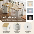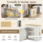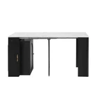 TREXM Extendable Dining Table with 3 Removable Leaves - Mobile Rolling Island with Power Outlet & Storage (3 Colors) for Dining/Living Room Transform your dining and living space with the TREXM Extendable Dining Table—versatile, stylish, and packed with functionality. Available in three stunning color combinations (Cream White & Natural, Grey Blue & Natural, Black & Marble White), this multi-purpose table features 3 removable middle leaves, hidden rolling wheels, built-in power outlets, ambient LED lighting, and ample storage. Perfect for small apartments or growing families, it adapts seamlessly from solo meals to guest gatherings, doubling as a kitchen island, sideboard, bar table, or display cabinet. Combining modern aesthetics with heavy-duty durability, it’s the ultimate space-saving solution for your home. Style 1: TREXM Extendable Dining Table (CREAM WHITE AND NATURAL) - SKU: N715P343722K / N715P343721K Product Specifications Feature Details Origin China Color Cream White & Natural Material Glass + MDF + Particle Board + Steel Applicable Scenes Dining Room, Living Room, Kitchen (as Island/Sideboard/Bar Table) Assembled Dimensions (L×W×H) 59.00 × 32.70 × 30.30 Inches Product Weight 118.20 Pounds Package Details (2 Separate Packages) Subproduct 1: N715P343722K | 37 × 32.48 × 5.7 Inches | 64.57 Pounds Subproduct 2: N715P343721K | 36.81 × 18.89 × 7.29 Inches | 64.49 Pounds Weight Capacity 225 LBS (Tabletop) Special Features 3 Removable Middle Leaves, Hidden Rolling Wheels, Duckbill Buckles, Built-in LED Light (Warm Light), Multi-Port Power Outlet (USB + Type-C), 3-Tier Storage Cabinet, Adjustable Foot Pads Key Features Timeless Modern Aesthetics : The cream white and natural color combination creates a striking visual contrast, embodying a minimalist, fresh style. Accented with sleek metal handles and elegant arched fluted glass doors, it exudes exquisite craftsmanship. Chamfered round edges soften the tabletop corners, making it safe and gentle for households with kids or pets. This table seamlessly complements diverse home decor styles and functions as a dining table, kitchen island, sideboard, bar table, or display cabinet. Extendable Tabletop for Flexible Use : 3 removable middle leaves allow free expansion, adapting to all your needs. Equipped with hidden smooth-rolling wheels for effortless sliding and duckbill buckles for easy opening/closing (while stabilizing the structure), it offers versatile use: 1 panel for solo time, 2 panels for cozy meals with 2-3 people, and 3 fully extended panels for weekend gatherings with 4-5 guests. When not in use, it folds into a compact sideboard that tucks neatly against the wall, saving valuable space. Space-Saving Storage Solution : The built-in cabinet features a 3-tier partitioned interior to organize books, tableware, decor, and more—plus an independent side storage area for extra convenience. When not dining, the 3 removable middle leaves can be tucked into the cabinet to free up even more space. The “hidden + open” dual storage system eliminates clutter, keeping your space tidy and organized—ideal for small apartments or homes needing efficient storage. Smart Integrated Design (Lighting + Charging) : A built-in LED light strip with gradient lighting effects adds a warm, cozy atmosphere to your dining space (note: cream white cabinets feature warm light). The integrated multi-port power outlet includes USB and Type-C ports, allowing convenient charging of phones, tablets, and small appliances nearby—perfect for modern, smart lifestyles. Sturdy & Heavy-Duty Durability : Duckbill buckles not only enable easy operation but also enhance overall table stability. Middle metal support legs distribute weight evenly, and adjustable bottom foot pads adapt to uneven floors, preventing wobbling and boosting load-bearing capacity. Premium materials (smooth-sliding hidden table rails, robust steel, MDF, and glass) ensure long-lasting use, with the tabletop supporting up to 225LBS—stable even for large gatherings. Straightforward Assembly : Full assembly is required, but this extendable dining table comes with detailed, step-by-step instructions. Follow the clear guidelines, and you’ll complete assembly efficiently—no professional tools or experience needed. Style 2: TREXM Extendable Dining Table (GREY BLUE AND NATURAL) - SKU: N715P343722E / N715P343721E Product Specifications Feature Details Origin China Color Grey Blue & Natural Material Glass + MDF + Particle Board + Steel Applicable Scenes Dining Room, Living Room, Kitchen (as Island/Sideboard/Bar Table) Assembled Dimensions (L×W×H) 59.00 × 32.70 × 30.30 Inches Product Weight 118.20 Pounds Package Details (2 Separate Packages) Subproduct 1: N715P343722E | 37 × 32.48 × 5.7 Inches | 64.57 Pounds Subproduct 2: N715P343721E | 36.81 × 18.89 × 7.29 Inches | 64.49 Pounds Weight Capacity 225 LBS (Tabletop) Special Features 3 Removable Middle Leaves, Hidden Rolling Wheels, Duckbill Buckles, Built-in LED Light (Cool Light), Multi-Port Power Outlet (USB + Type-C), 3-Tier Storage Cabinet, Adjustable Foot Pads Key Features Timeless Modern Aesthetics : The grey blue and natural wood color pairing creates a sophisticated, calming visual contrast, perfect for minimalist or contemporary homes. Accented with sleek metal handles and elegant arched fluted glass doors, it showcases exquisite craftsmanship. Chamfered round edges soften the tabletop corners, ensuring safety and a gentle touch for all households. This versatile table complements diverse decor styles and functions as a dining table, kitchen island, sideboard, bar table, or display cabinet. Extendable Tabletop for Flexible Use : 3 removable middle leaves enable free expansion, adapting to every occasion. Hidden smooth-rolling wheels make it easy to move, while duckbill buckles ensure easy opening/closing and structural stability. Use 1 panel for solo relaxation, 2 panels for cozy meals with 2-3 people, or 3 fully extende