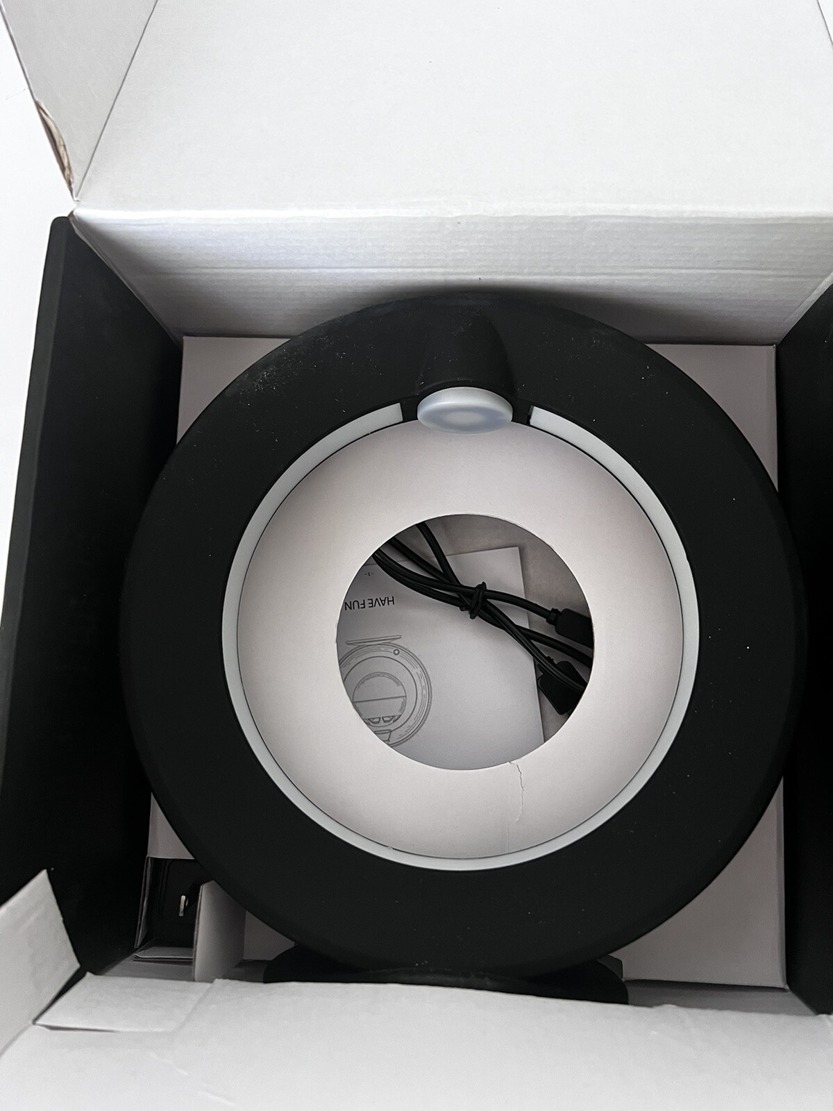 FLOATING SPEAKER BLUETOOTH LED. 360 Degree Magnetic Levitation 3D Surround Sound Wireless Rotating Portable Bluetooth Speaker Cordless This Floating Speaker is like new. Still in original box. Includes speaker, power supply, charging cable and instruction manual. TESTED AND WORKS!