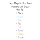 Lock your whiteboard markers to any metal surface with Expo Magnetic Dry Erase Markers with Eraser. An integrated magnet provides convenient and care-free storage on metal-backed white boards and other metal surfaces. What’s more, the cap features a handy Expo eraser for precise, on-the-fly erasing. Each Expo dry erase marker has a fine tip that draws bold details and quick-drying, low-odor ink that’s perfect for both the office and classroom. Integrated magnet sticks to metal surfaces for easy storage Eraser is built into the cap Bold ink is quick drying and low odor Fine tip is great for marking details and lines Includes 8 assorted colors: 1 Black, 1 Green, 1 Blue, 1 Red, 1 Pink, 1 Purple, 1 Orange and 1 Brown fine tip dry erase marker