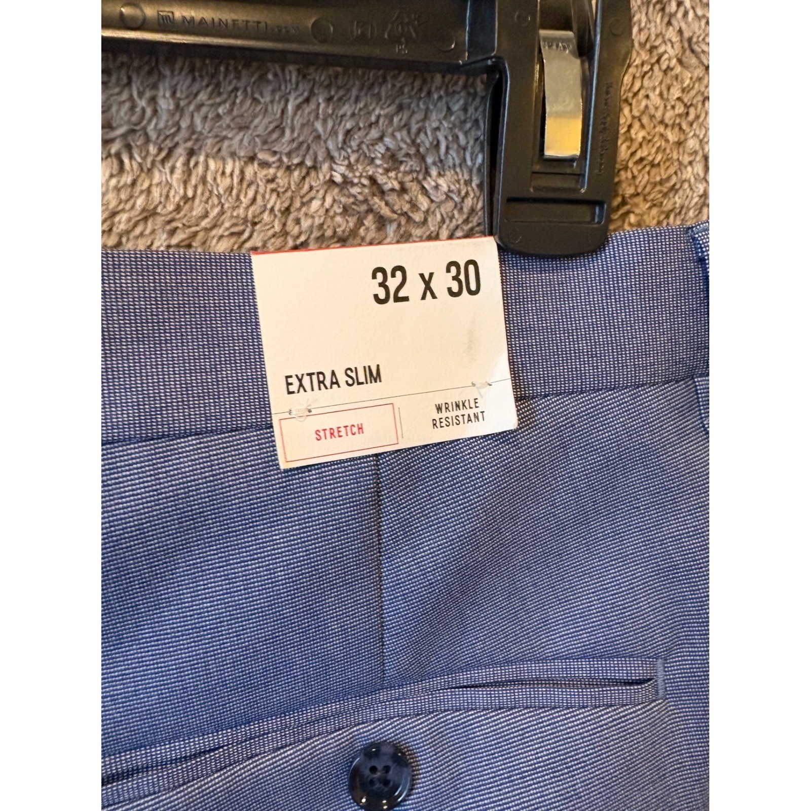 Express Men's Extra Slim Fit suit separates ensemble in a versatile blue hue. This ensemble features a stretch fabrication for added comfort and wrinkle resistance, making it ideal for travel or busy days. The blazer offers a modern, sharp silhouette, while the pants are designed for a clean, tailored look. Perfect for business meetings, formal events, or a sophisticated night out. Measurements: • Waist: 32 in • Inseam: 30 in • Blazer Chest (pit to pit): 20 in • Blazer Sleeve Length (shoulder to cuff): 25 in • Blazer Length (collar to hem): 30 in Type: Suit Pants Department: Men Style: 2 Piece Material: Polyester, Elastomultiester Pattern: Herringbone Fit: Extra-Slim Jacket Cut: Single-Breasted Number of Pieces: 2 Piece Waist Size: 32 in Jacket Front Button Style: Three-Button Occasion: Business, Casual Jacket Lapel Style: Notch Inseam: 30 in Keywords: Express Suit, Mens Blazer, Mens Dress Pants, Extra Slim Fit, Stretch Fabric, Wrinkle Resistant, Business Attire, Formal Wear, Office Wear, Modern Style, Tailored Fit, Blue Suit, Suit Separates