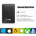 External Hard Drive 1TB 2TB for PC Xbox One, PS4, Portable Ultra-Fast USB3.0 HDD Product Description Product Overview KESU-2518 Portable Hard Drive Disk provides extra storage for your ever-growing collection of files. It is trusted to store the massive amounts of photos, videos and music you love. Neatly organize and store all your files, consolidate all of your files to a single location. Free up space on your computer's internal drive to help improve performance, without having to worry about running out of space. Sometimes adding extra storage isn't enough, you may need to take your files with you. KESU Portable external hard drive will be a perfect solution. Main Features Store the massive amounts of documents, photos, videos, music you love. USB 3.0/2.0 compatible port to deliver ultra-fast transfer speed, Save your time. Plug and Play, Easy and simple to use. A full range of protection to ensure that your product durable. Operating system: Windows 10 / 8 / 7 / Vista / XP, Mac OS X, Linux OS. External Hard Disk Capacity:120GB/ 160GB/ 250GB/ 320GB/ 500GB/ 750GB/ 1TB/ 2TB Capacity from 250GB to 2TB can compatible with PS4, Xbox One X Trusted & Reliable Quality Great for backing up videos, music, photos, files, games from your mobile phone, laptop, desktop pc, Easy to use and works perfectly on PC, MAC, TV, Laptop, PS4/5 and XBOX ONE / X ... USB 3.0 Fast Data Transfers Plug and Play, no need to inistall any drive software, just plug in and go. Super speed USB 3.0 port to deliver ultra-fast transfer speed, save your time. Backward compatible with USB 2.0 port , so you don't have to worry about hardware compatibility issues Packing List 1x Portable Hard Drive Disk 1x USB 3.0 Cable 1x User Manual and Service Card Gaming Compatibility It will work on PlayStation 4,5, PS4 Pro/Slim, PS5, Xbox 360, Xbox One X/S, Xbox Series X/S, Nintendo Wii U ... Note: Xbox Series X and Series S and PS5 games will only run on their internal storage. You can play PS4 games from the external storage connected to a PS5 console (backward compatibility. You can play Xbox One and Xbox 360 games from the external storage connected to Xbox Series X/S console (backward compatibility).