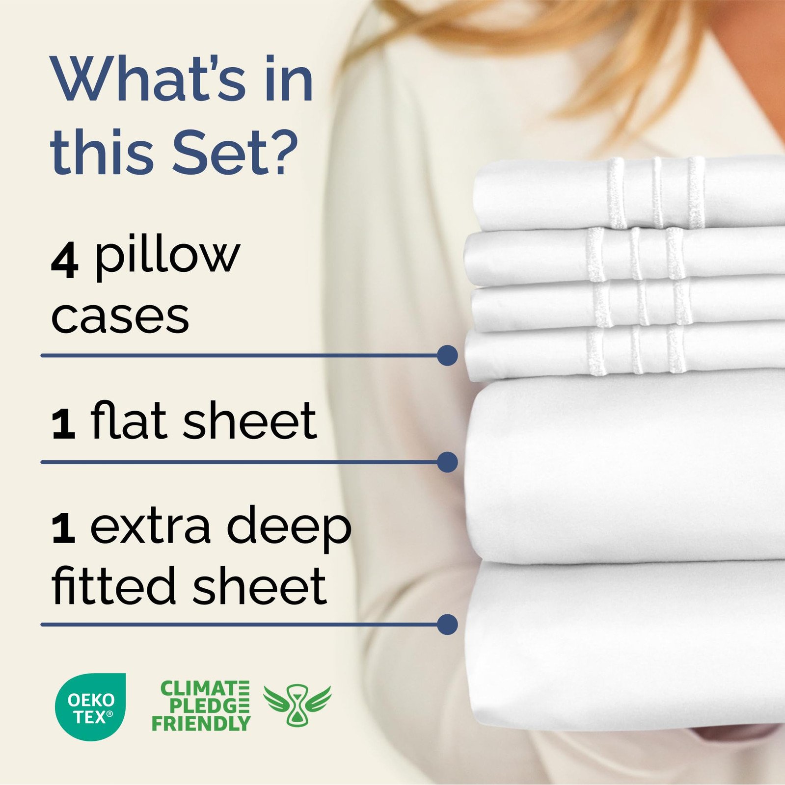 EXTRA DEEP POCKET QUEEN SHEETS / EXTRA DEEP FITTED QUEEN SHEETS: These bed sheets are for very deep pocket mattresses. They fit any mattress with pockets that are 18, 20, 21, 22 and 24 inches deep. There's stretchable elastic around the extra deep fitted sheet which stretches for a nice tug around your mattress. Perfect for extra tall & large mattresses. Rest assured these oversized sheets will stay on tight & stay in place! 6 PIECE SHEET SET: This bed sheet set comes with 4 pillowcases total all with a beautiful decorative embroidery design on each pillow case. The pillow cases have enclosure designs. This bedding set will accommodate your extra thick mattress perfectly. GREAT FOR DOUBLE PILLOW TOP MATTRESS: These bed sheets are perfect for mattresses with a 3 inch or 4 inch topper on top, memory foam toppers, big mattress pads, pillow tops, foam toppers, big foam toppers, pillow top mattresses and memory foam. These sheets will not come off. MICROFIBER: These are the softest type of microfiber bed sheets we have created. Super soft with a light feel. Not crisp like cotton. If you're accustomed to cotton sheets and you've never tried microfiber sheets we recommend you give these a try. They're even softer than cotton! DIMENSIONS & SIZES: Flat Sheet 95 wide and 102 long. Fitted sheet 60 wide and 80 long with 21 inch pockets (has elastic so it can stretch). All four pillow cases are oversized 20 x 30 inch.