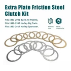 About this product Fitment : Replaces of HD P/N 37911-90 and Kevlar OEM P/N 307-30-10011 1990-1997 Big Twin (Touring Dyna and FXR ) models 1991-2017 XL883 XL1200 models 1991-2002 Buell All models Performance Boost : Extra plates increase surface area by 13%, ensuring quicker engagement, smoother rides, and fewer slips—perfect for aggressive riding Runs Cooler, Lasts Longer : Special groove design improves cooling and extends clutch life while maintaining consistent performance High-Quality Build : Crafted from durable steel and high-friction materials for lasting performance and reliable grip Hassle-Free Install : Comes with everything you need and easy-to-follow instructions. Soak the plates in oil, and swap them out effortlessly! Customer Service: We offer 24/7 support, responding to your queries within 24 hours. Whether it's about product fit, installation, or after-sales assistance, we're here to ensure your satisfaction from start to finish Dear Riders, Please take note that this item is a custom aftermarket product and not an OEM part. While it is designed to fit the models listed, some modifications may be necessary. We recommend professional installation to ensure proper fitment. Before making your purchase, kindly ensure compatibility with your vehicle. If you encounter any difficulties during installation, we encourage you to seek assistance from a local dealer. If our product does not meet your expectations or if you encounter any issues, please reach out to us via message before considering returning it or leaving negative feedback. We are committed to finding a satisfactory solution for you, including refunds if necessary. We deeply value your understanding and support in delivering our products to your doorstep. Thank you for choosing us. Our Shipping Guarantee: Fast & Secure We're dedicated to getting your orders to you quickly, safely, and without any fuss. Our shipping policy ensures both speed and security for every delivery. Although we primarily operate in the United States, we cover every corner of the nation. No matter where you are in the USA, you can trust us to deliver your package with care and professionalism Feedback: We value your input in helping us enhance our products and services. Your thoughts and suggestions are important to us, so please feel free to share your experience. We're committed to exceeding your expectations, so if you're happy with our products, we'd appreciate a 5-star rating. If you have any questions, please reach out to us anytime. We believe that communication is key and are here to assist you promptly. Thank you for your understanding and support. Hassle-Free Returns We understand that sometimes things don't work out as planned. That's why we offer hassle-free returns within 30 days of purchase, no questions asked. Whether you changed your mind or the product isn't what you expected, we've got your back. Returning is easy. Contact us with your order info, and we'll help you. Please remember to contact us with your order through messages, we can provide you with all the shipping stuff quickly. Thank you and welcome to click here back to our homepage! https://www.ebay.com/str/mokitdora