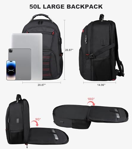 Travel Backpack Extra Large 50L Laptop Backpacks for Men Women Description: backpack Features: ✨ School Backpack, Laptop Backpack, Carry on Backpack, Durable Extra Large 17 Inch TSA Friendly Business Travel Laptop Backpack with USB Port, Anti Theft tsa backpack Bag Gifts for Men Women,you deserve it! ✨EXTRA LARGE CAPACITY & ORGANIZED: The travel School bag owns 3 spacious main multi-compartments with many hidden pockets for large storage and organization for small items. This School Travel Backpack has a separate laptop compartment fits 17.3/17/15.6 inch laptops, and one main compartment is roomy for daily necessities, such as travel accessories. The front compartment of the School Laptop backpack has many small pockets, such as pen pocket and a keychain design to keep your things organized. ✨USB CHARGING PORT & HEADPHONES HOLE: External USB charging port with built-in charging cable, extra large School Travel backpack airline approved is easily to charge your phone and other electronic devices (NOTE: POWER BANK IS NOT INCLUDED). Also, there is a headphone hole on the outside the Laptop backpack for you to use headphones at any time.As a School backpack for men / backpack for women / travel backpack / carry on backpack / School backpack . ✨TSA AIRLINE APPROVED: Designed for air travel. The heavy duty School backpack for men and women can be freely unfolded 90-180 degrees, Get through airport security quickly. Large School laptop backpack is a companion for outdoor/indoor activities, which is very suitable for daily use and travel.backpack for Father's Day Gifts, backpack for Mother's Day Gifts.Gifts for men, Gifts for women,computer bags for women,computer bags for men,business backpack for men, business backpack for women. ✨BREATHABLE & COMFORTABLE: The large School travel backpack for men with a padded and breathable mesh back panel to aid in ventilation and heat dissipation. Shoulder straps are made of honeycomb-breathable material. The ergonomic design ensures that the weight of the extra large Laptop backpack is distributed, reducing stress on the shoulders. SHIPPING We are always working hard to ensure your package arrives as soon as possible. Please understand that some factors like weather, high postal traffic, and the performance of shipping companies are outside of our control. We offer free shipping to the lower 48 states and ship within 3 business days of payment, usually sooner. We do not accept P.O. Boxes. Please provide a physical address.