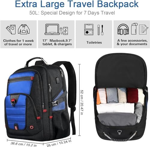 Return Policy Fast Delivery Trusted seller Extra Large Backpack, Travel Laptop Backpack for Men, Anti Theft College Backpack with USB Port, TSA Approved Backpack 17.3 Inch, Sturdy Waterproof Backpack, Heavy Duty Business Weekender Bag, Blue Product Description 【100% LIFETIME-WARRANTY】: Buy this travel backpack for men you can get 100% warranty and 7*24 hours friendly customer service. Z-MGKISS school backpack, you deserve it! Great gift choice as a heavy duty backpack for school / school bags for women / large backpack for school 【Convenient for Travel】: Lay flat TSA friendly design helps you speed through airport security and keep items tidy, exclusive designed for airplane travel. The big travel backpack for men is perfect for indoor / outdoor activities / back to school, served as big backpacks for school / extra large laptop backpack / bookbag for school/ carry on bags for airplanes / travel backpack for men / backpack for men school with large capacity & USB charging port, you can use it at anyw 【Large Capacity & Organization】: Multiple functional pockets ensure you'll get large storage and multiple compartments to keep your personal belongings well-organized and get them easily whenever you need. One separate laptop compartment hold 17.3 Inch Laptop as well as 17 Inch, 15.6 Inch laptop backpack Macbook / Laptop. This back pack 3 spacious main compartments roomy for many hidden pockets to hold many things like supplies, travel accessories for easy access to essentials 【Comfortable Ergonomic Design】: The ergonomic design of this 17 Inch laptop backpack ensures it comfortable to wear even with all your gear loaded. The travel backpack comfortable breathable straps help relieve shoulder pressure. Large backpack with a sturdy handle on the top for carrying, side compression straps keep the carry on backpack at you requires. The luggage strap makes it easy to attach your backpack to the luggage trolley, making your travels more convenient 【USB Port & Headphone Design】: This 17 inch laptop book bag for school offers you a more convenient way to charge your phone. External USB port with set-in charging cable offers convenient charging your cellphone everyw.(Tips: power bank is not included) A hole for headphone outside gives easy access to earphone usage. As a backpack for men women/ travel backpack/ carry on backpack/ big backpack for school, you will enjoy It's fashionable and convenient everyw Shipping Returns Payment Shipping Shipping is FREE to all addresses other than APO/PO boxes in the lower 48 states. All our stock ships from US-based warehouses. Shipped via USPS or UPS (depending on location and package weight) Unless stated otherwise, all orders will ship within 24-72 hours of your payment being processed. Check our feedback to see the great reviews of FAST shipping we offer. Returns Seller does not accept returns Payment We currently accept payment via eBay managed payments only. Once payment is cleared, we will dispatch your shipment within 1-3 business days. Please refer to the "Shipping" tab for more information regarding shipping speed to your destination.