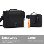 Large Capacity: large toiletry bag measures 11 x 6.2 x 8.8 inches (27.94 x 15.75 x 22.35 cm), and the X-Large size is 12.5 x 7.3 x 11 inches (31.75 x 18.54 x 27.94 cm). Whether for personal trips or family travel, you can easily pack all your toiletries into one bag, avoiding the hassle of carrying multiple smaller bags Soft and Lightweight Nylon: The large-size toiletry bag weighs only 12.35 oz (350g), while the X-Large size is 17.64 oz (500g), making it so lightweight that you’ll hardly notice the bag’s weight when traveling. Made from soft nylon, the material is durable, water-resistant, and scratch-resistant, ensuring long-lasting use and protection for your belongings Multiple Pockets and Compartments: The toiletry bag has more pockets and compartments than you might expect! It features 2 top mesh pockets ideal for small items like medicine and wet wipes. There is also a large main storage pocket for travel-size and normal-size toiletries, with internal compartments designed to keep liquid bottles upright. Additionally, the 2 side pockets are perfect for long, slim items such as makeup brushes, toothpaste, toothbrushes, and more Practical Hanging Hook: Our hanging toiletry bag features the HANGING function, the metal hook helps you hang the whole bag on the wall, especially in a narrow bathroom, camping tent, or RV. The hanging toiletry bag would save space and be convenient for accessing items while bathing Smooth Double Zipper: Far differing from other toiletry bags Dopp kit adopted aluminum alloy double zippers. The zipper is smooth and strong, so you can zip the bag easily with full items. When one zipper is broken the other is still working Strength Handle: The handle is durable and seamed tightly on the bag, the max holding weight is 30 lb. You can carry it easily on travel with full toiletries without worrying about the handle strip breaking. The X-Large size bag has an extra shoulder strip which is effective to carry Easy to Clean: Made from nylon fabric the toiletry bag is solid and water-resistant. The surface is easy to clean with a wet rag. Meanwhile, the inner mesh design makes the bag more breathable, it is faster drying than other toiletry bags Widely Used: The toiletry bag is highly versatile, perfect not only for travel but also for trips to the gym, camping, long-distance driving, or daily use at home. In addition to storing toiletries, it can serve as a makeup/cosmetic bag, hygiene kit, or medicine organizer, making it a multifunctional solution for various needs 10 Colors Available: There are 10 mainstream colors available including men's toiletry bag and women's toiletry bag. toiletry bag is suitable for keeping travel toiletries, makeup supplies, shaving supplies, medicine, etc Good Gift Choice: hanging toiletry bag is a good gift for family and friends. It is practical for keeping toiletries for women and men