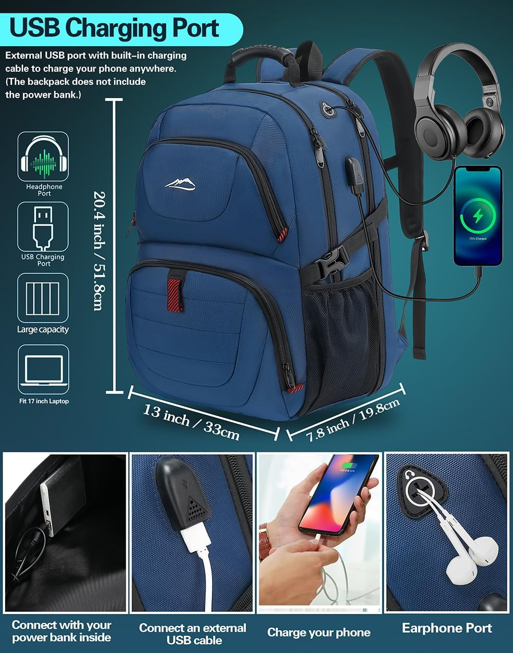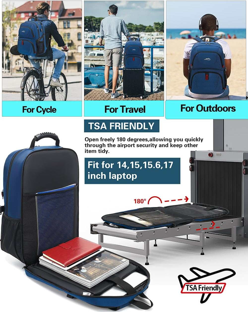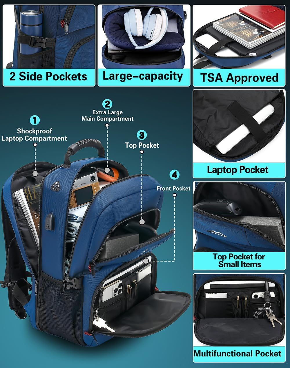 Store New Arrivals Add to Favorite View Feedback Contact Travel Backpack, Extra Large Laptop Backpack School Business anti Theft TSA Approved College Work Computer Bag Fits 17 Inch Laptop with USB Charging Port Bookbag for Women Men(Blue) Description Item model number PE20230501 Age Range Description Adult Capacity Total 50 Liters Number Of Items 1 Color Blue Product Dimensions 7.8 x 12.99 x 20.39 inches Country of Origin China Item Weight 0.97 Kilograms Department unisex-adult Units 1 Count 【Extra Large Capacity & Multi Compartments】The extra large backpack designs with 3 main compartments with many functional pockets,which can accommodate many stuffs and organized small items, with a storage capacity of 50L.A compartment can hold a laptop up to 17.3 inches.Another main compartment can hold clothes, travel items, etc. The front compartment has functional pockets and key chain for other small items.You can keep items organized and easy to find. 【Hig Quality Material for Long Lasting】: ProEtrade travel backpack is made of anti scratch fabrics which is sturdy for long Lasting.Double metal zippers can open and close smoothly,ensuring daily use of the backpack.It also has sturdy handle on top for easy portability. They are best partner for traveling , working , hiking , or daily using. 【TSA Friendly & Keep Safe】Our backpack can be freely unfolded 90-180 degrees, making it TSA approved and perfect for airplane travel.A luggage strap and an anti theft pocket are designed for easy to carry and keep belongs safe. It is perfect for different activities and can be used as a business work bag, large laptop bag, or spacious travel backpack. 【USB Charging Port & Headphone Port】External USB charging port with built-in charging cable ,provides a convenient charging of your electronic device anywhere.It is also has headphone port for easy access.This tech backpack is a great gift choice for women & men.(Please noted that the backpack doesn’t include the power bank.) 【Air Flow System & Ergonomic Design】 Airflow padded back and breathable mesh design help for the air convection, heat elimination and ventilation.The sponge shoulder straps and chest strap relieve the pressure and make you more comfortable while using it.The ergonomic design can protect your backbone effectively. Product Description 1 TSA FRIENDLY 2 USB CHARGING PORT 3 RELIEVE STRESS 4 MORE FUNCTIONAL 5 FIT 17 INCH LAPTOP Does this backpack have a power bank? Hello, this backpack does not come with a power bank. However, it does have a USB charging port and a charging cable for easy charging. What material is it? Hello, this backpack is made of nylon material, which is known for its durability and toughness What size laptop can fit? Hello, the maximum size of laptop that this backpack can accommodate is 17 inches. ABOUT US We offer the best prices around on high quality products. Our E-store includes media such as books, movies, music and games while offering electronics, toys, sporting apparel, clothing, tools, general home, garden items and more. SHIPPING We are always working hard to ensure your package arrives as soon as possible. Please understand that some factors like weather, high postal traffic, and the performance of shipping companies are outside of our control. We offer free shipping to the lower 48 states and ship within 2 business days of payment, usually sooner. We do not accept P.O. Boxes. Please provide a physical address. For shipping outside of the continental USA, we only use eBay's Global Shipping Program.The item is shipped to KY and then sent to the rest of the world. International customers are responsible for all duties and taxes. Continue to check out in order to calculate costs for shipping the item to your country. Messages regarding eBay's Global Shipping Program MUST be directed at eBay EXCLUSIVELY. RETURNS We offer a 30-Day Return Policy on items which you are not completely satisfied with. You have the option for a full-refund or an exchange of the item. No returns are available on items shipped outside of the USA. PAYMENT We accept PayPal. CONTACT US This page content is yet to come Please ad us to your favorite seller and visit again later Thank You CUSTOMER SATISFACTION We try our very best to make sure every customer is completely satisfied. If there's a problem, message us! We're happy to help. WE ACCEPT Copyright © 2021 AutoDS. | All Rights Reserved