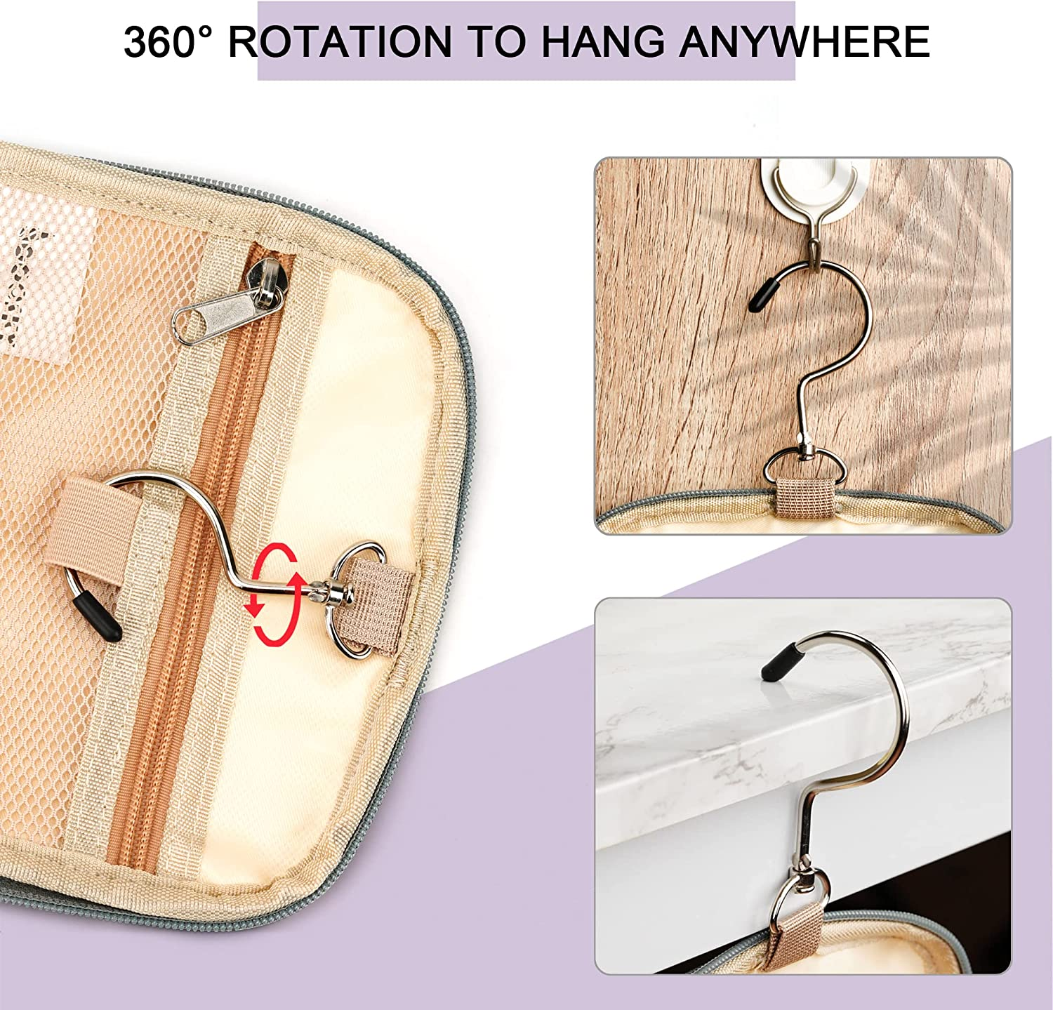 GREAT ORGANIZER MASTER – This toiletry bag is designed with 6 storage compartments. You can categorize all your toiletries and put them into different pockets to make your journey orderly. Full load state size: 13.6 " L x 6.5" W x 11.8 " H, Empty state size:11" L x 6.5" W x 11.8" H. its main compartment can accommodate full-size toiletries and cosmetics (23.6oz / 700ml), travel essentials. CONSIDERABLE DESIGN - The elastic band and elastic mesh bag in the main compartment and two side compartments can keep the bottle fixed and upright. It has two waterproof compartments specially used for storing wet items. You can put your wet towel, toothbrush, shaving kit, and leaky cosmetics in it. The 360 degrees rotate metal hook gives you a variety of hanging options. EASY TO USE - When it is open and hanging, all the pockets will be lined up and displayed in front of you. You can quickly take out the items you need without making a mess inside. It has shoulder straps. You can carry it on your shoulder, carry it by hand, or put it in a trolley box to free your hands. CRAFTSMANSHIP DETAILS - All stressed positions have been reinforced. SBS zipper ensures smooth opening and closing without cracking. Metal hardware can bear more weight. The elastic mesh bag can hold more items. MULTIPLE USAGE - In addition to traveling, you can take it to the gym and on a business trip. You can also hang at home and install some infrequent items to save your washstand space and make everything less crowded. In addition, it is also suitable for Christmas, Halloween, and birthday gifts to your family and friends. Product Description Have you ever had the following headache? Ready to go on a trip with your family but your wash bag can't hold full-size shampoo? Always worry about the glass bottles broken without fixing in the bag during the journey Forgot to take the shower gel when taking a bath and must risk catching a cold and rummaging in the messy wash bag for a long time? Your ordinary wash bag can only be placed in a specific place. You must move back and forth every time when you make up? Wet towels and toothbrushes and easily leaked cosmetics always make the bag very wet? COOSKY knew those small things would easily ruin our happy journey, so we designed this oversized toiletry bag. Our toiletry bag can hold full-size shampoo, shower gel, and even a hairdryer. It is designed with 6 compartments with a strong classification system and organization ability. Toiletries can be placed in an orderly manner to help you quickly get what you need. The internal elastic belts can make the bottles stand upright without colliding with each other. The metal hook with 360° rotation can be hung on the hook, bathroom door, crossbar, and even desktop. Two waterproof pockets, your wet towel, toothbrush, and razor can be stored separately without wetting anything else. With shoulder straps and fashionable style, we believe the COOSKY wash bag is your travel essentials when you are traveling, camping, on vacation, going to school, or going to the gym.