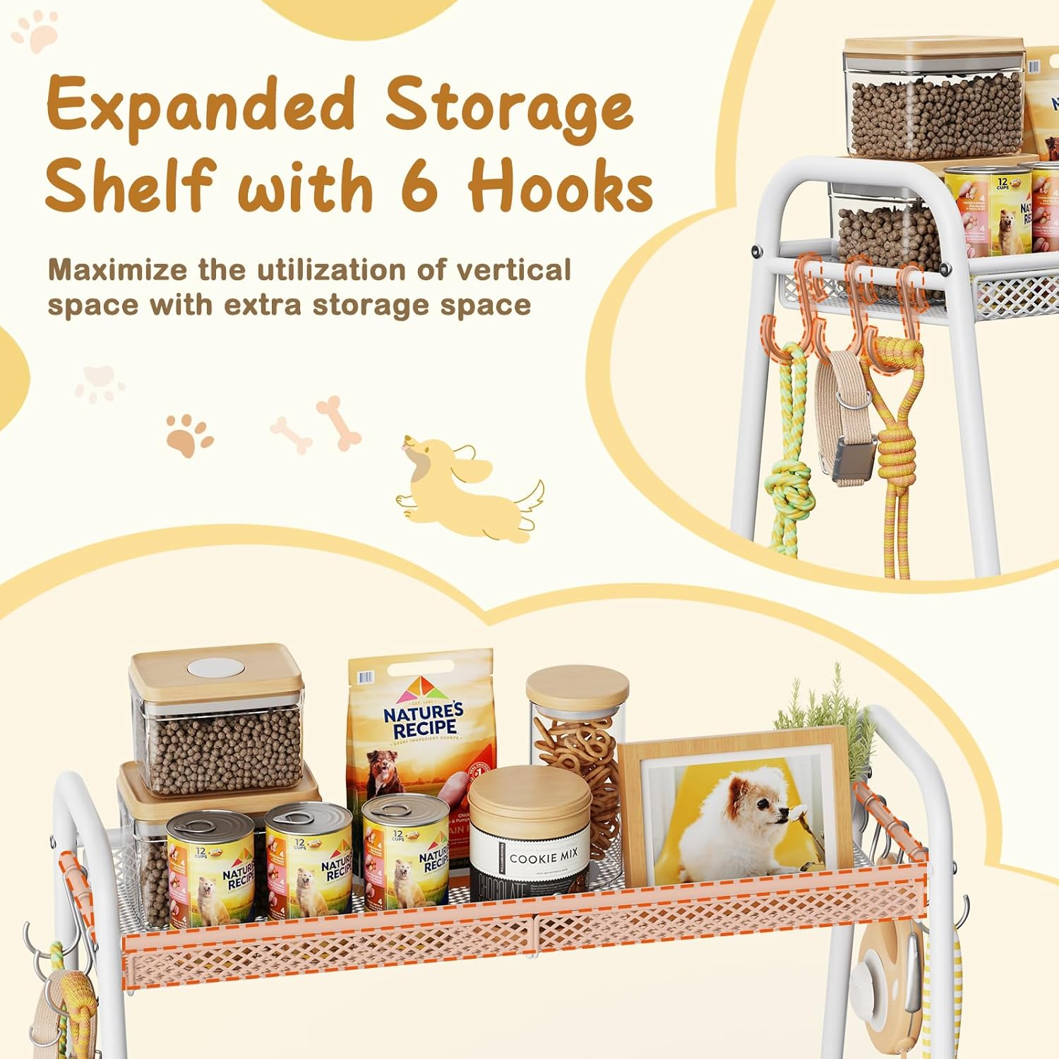【Multifunctional Dog Toy Storage Rack】 More than just a dog toy basket, this dog storage organizer features an extra top shelf and six hooks for maximum dog organization and storage. Create a dedicated, tidy space for all your pet's playtime essentials! With its spacious design and efficient use of vertical space, this basket for dog toys not only keeps your home clutter-free but also provides your pet with a stylish, organized corner of their own. 【Large Size Dog Toy Bin】 Measuring 23.6"x11.2"x9.7", our dog toy box offers more room than normal toy box for dogs. This dog toy basket large has ample capacity to better store larger toys and accommodate more toys of all sizes, including plush toys, balls, chews, and blankets, making it the ideal dog toy box for living room areas. This spacious dog toy storage solution keeps your pet’s toys tidy and easily accessible, perfect for households with multiple pets or a variety of toys. 【Extra Top Shelf & 6 Hanging Hooks】The top shelf offers secure extra storage with surrounding guards to prevent items from tipping, ideal for storing dog , treats, grooming tools, or display items like pet photos. Equipped with 3 hooks on each side, this dog basket for toys provides convenient hanging storage for dog collars, leashes, and other small essentials. This toy basket for dogs keeps everything within reach, making it easy to keep your space tidy and your pet's gear organized. 【Easy for Pets to Access】Designed with a wide, angled opening, this dog basket prevents dog toys from piling up greatly and becoming hard to find due to excessive depth of the dog bin. Combined with the wide space between the top shelf and fabric bag, the toy bin for dogs allows your pet to easily access their favorite toys independently, reducing the owner's hassle and enhancing the pet's enjoyment. 【Durable & Pet-Safe Construction】Crafted from a sturdy iron frame and wear-resistant Oxford fabric, this large dog toy basket is built to last. The smooth rounded metal tubing prevents accidental scratches and is gentle on curious noses and paws. Plus, the built-in handles make this dog toy holder easy to lift and move, simplifying cleaning and repositioning. And the adjustable feet provide stability on uneven surfaces, ensuring balanced support and slip resistance. 【Easy Assembly & Reliable Customer Service】Designed for quick and hassle-free setup, this pet toy basket comes with clear instructions and all necessary tools. We stand behind our dog storage bin with exceptional customer support—if you have any issues, our dedicated service team is ready to assist you promptly. Product Description