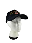 FDNY FIRE DEPARTMENT CITY OF NEW YORK Hat Cap Adjustable strap back has hook and loop strap closure. One size fits most adults. Made by City Merchandise, super soft 100% cotton, deep navy blue, almost black! Raised embroidered emblem on front of crown, and embroidered letters FDNY. Back of cap has white embroidered letters FDNY on the adjustable strap. The bill is rounded and the cap has six panels with eyelets on the four back panels. A fabric covered squatchee button is on the top of the cap. The soft cotton sweatband on the interior makes it very comfortable. In very good used condition, clean and well cared for. Please visit us at SiameseArt for additional hats. We have many! 416100 Blue Tag HC wall