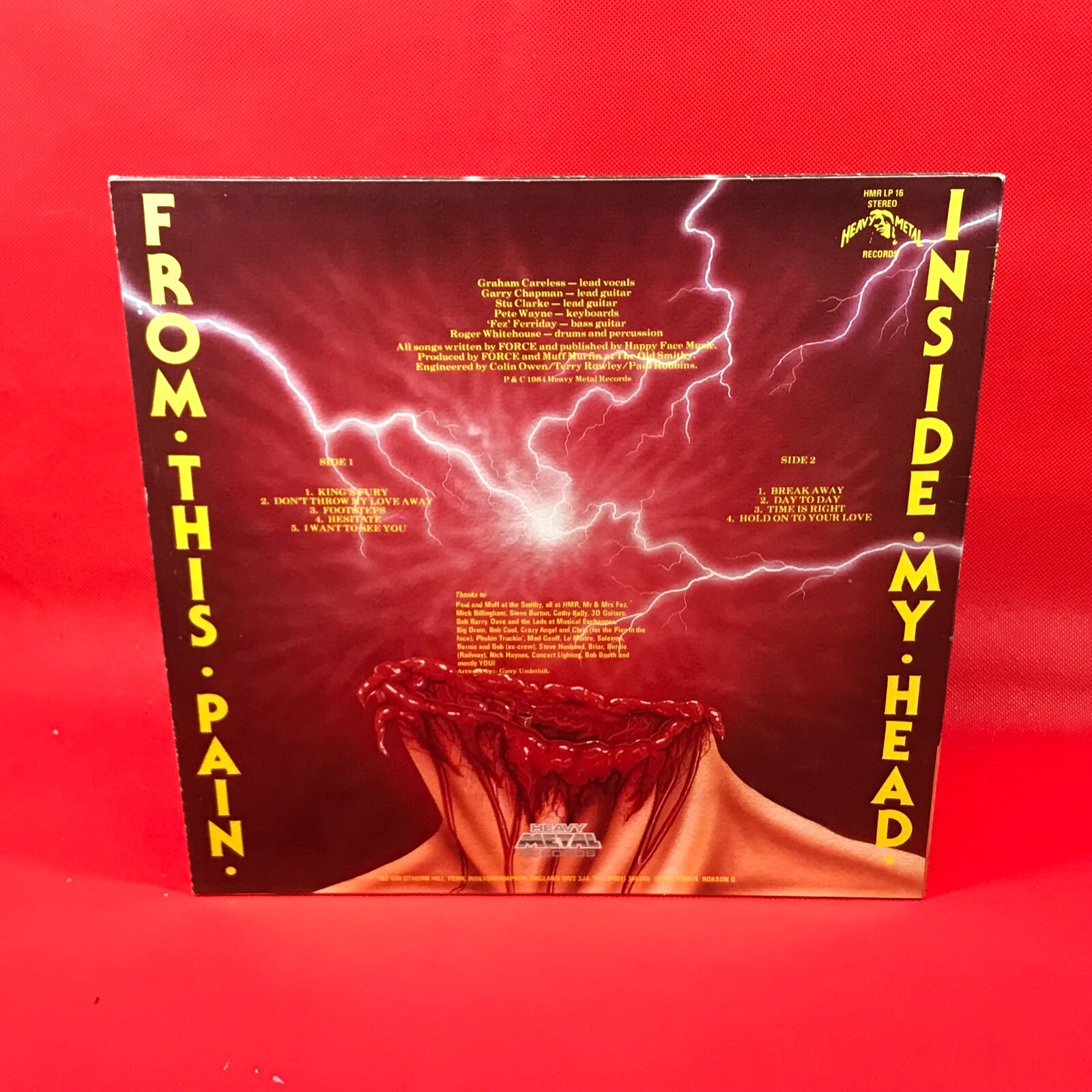 FORCE Set Me Free - 1984 UK vinyl LP. Force were born from the ashes of NWOBHM band Cryer who released a sole single in 1980. They then became Force who recorded and released this lone album in 1984. Featuring artwork by Gary Underhill with a textured picture sleeve. HMRLP16 A1 King's Fury A2 Don't Throw My Love Away A3 Footsteps A4 Hesitate A5 I Want To See You B1 Break Away B2 Day To Day B3 Time Is Right B4 Hold On To Your Love Record Condition : Excellent Sleeve : Minor shelfwear (see photo) Please check out our other items !