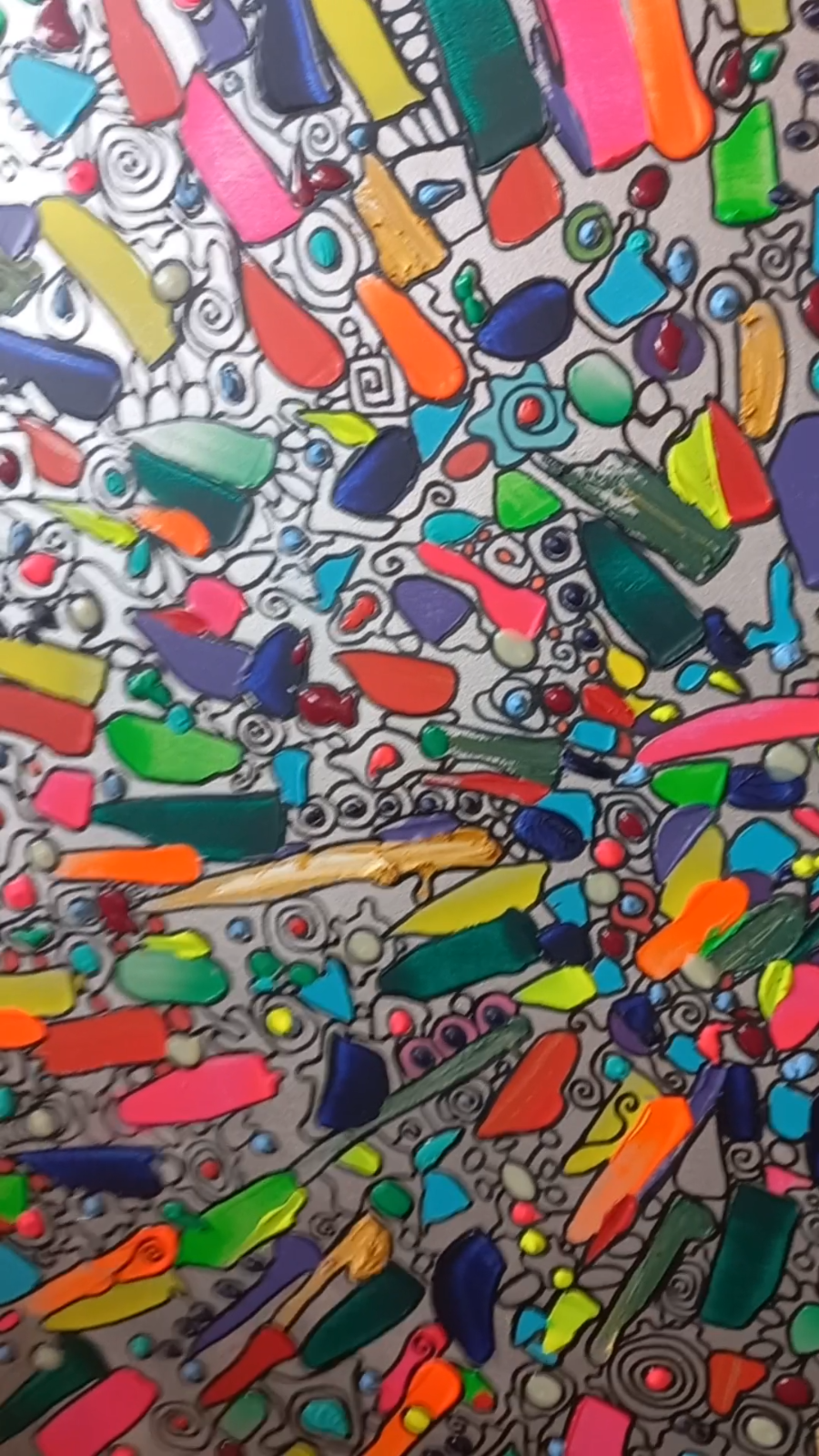 Painting as advertised, shipping, arrived within timeframe advertised, thoughtfully packaged and arrived undamaged, beautiful piece and fair pricing. Thank you seller, would purchase again. Painting is vibrant, beautiful, each time I look at it there is more to see. Very unique piece. Happy with my purchase.
