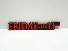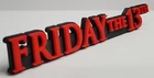 FRIDAY the 13th 2009 Remake Sign My signs have a peg that goes in the back and gives a little tilt back to the sign making it better to read. I make my signs with high quality PLA plastic. They are printed with multiple brilliant colors so there is no paint that will chip of fade over time. If you would like to have a sign in custom colors please let me know and I can make it the way you'd like. If there is a sign that you would like to have but don't find it our selection please let me know and I will get it designed and made for you. I take a lot of pride in what I do and strive to put out the best quality that I can. However with the nature of the process there may be small imperfections that get by my eye. Such as lines, tiny holes, and the possibility of slight color bleed. Colors may slightly differ for multiple reasons such as the difference in your screens colors vs. mine, the lighting in the picture, and the availability of materials. ((((((( MASKS AND OR PROPS IN PICTURES ARE NOT INCLUDED ))))))) Measurements of each size: 6" Sign is - 6" wide x 7/8" height 8" Sign is - 8" wide x 1 1/8" height 10" Sign is - 10" wide x 1 3/8" height 12" Sign is - 12" wide x 1 5/8" height