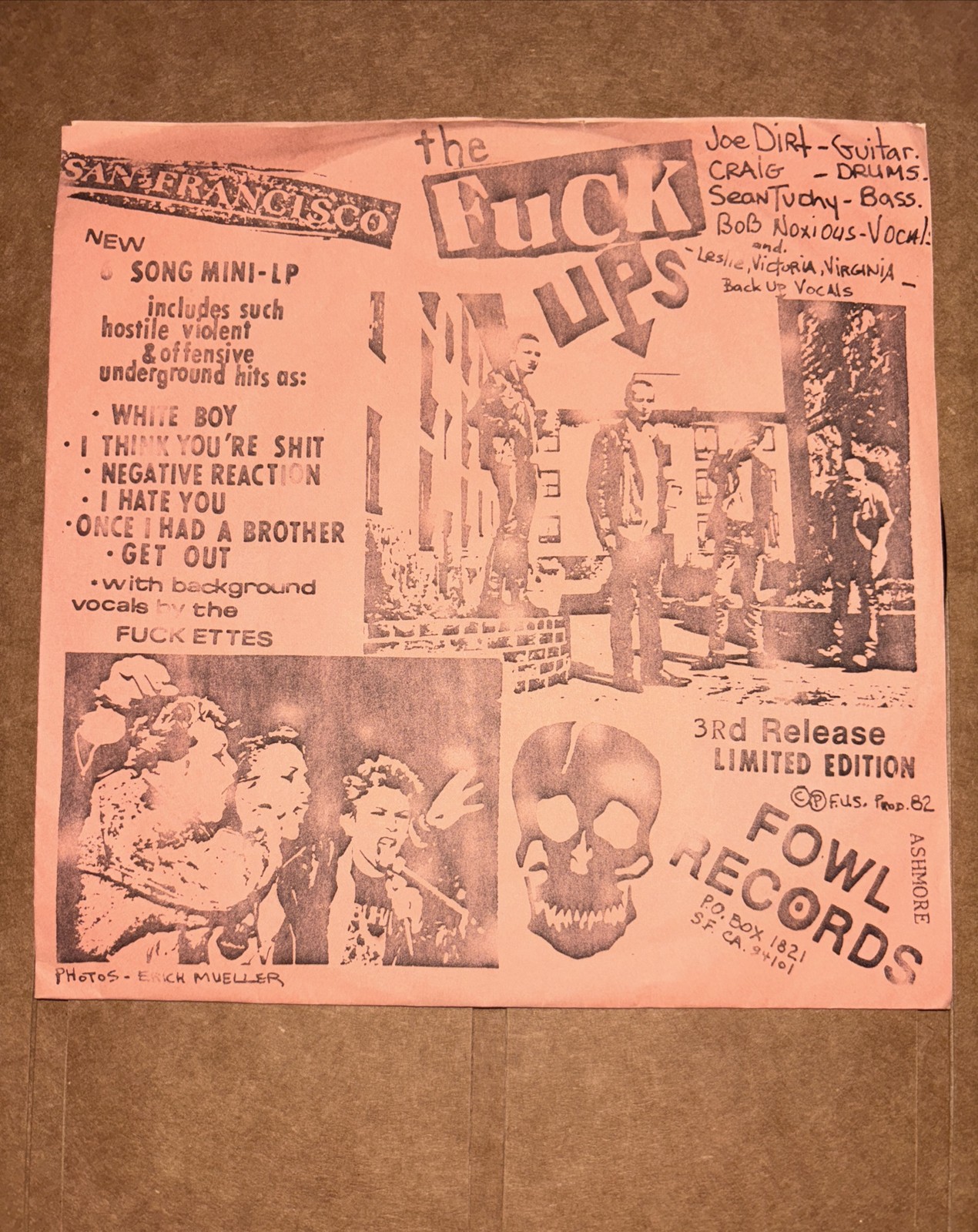 The product is a limited edition 7" EP vinyl record by the artist FUCK UPS, titled "FU 82." Released in 1982 by PNV, the record features hardcore and punk rock musi. This original edition is a rare find for collectors and fans of classic punk rock music from the United States. The record is in mint condition and comes in a near mint sleeve, making it a valuable addition to any vinyl collection.