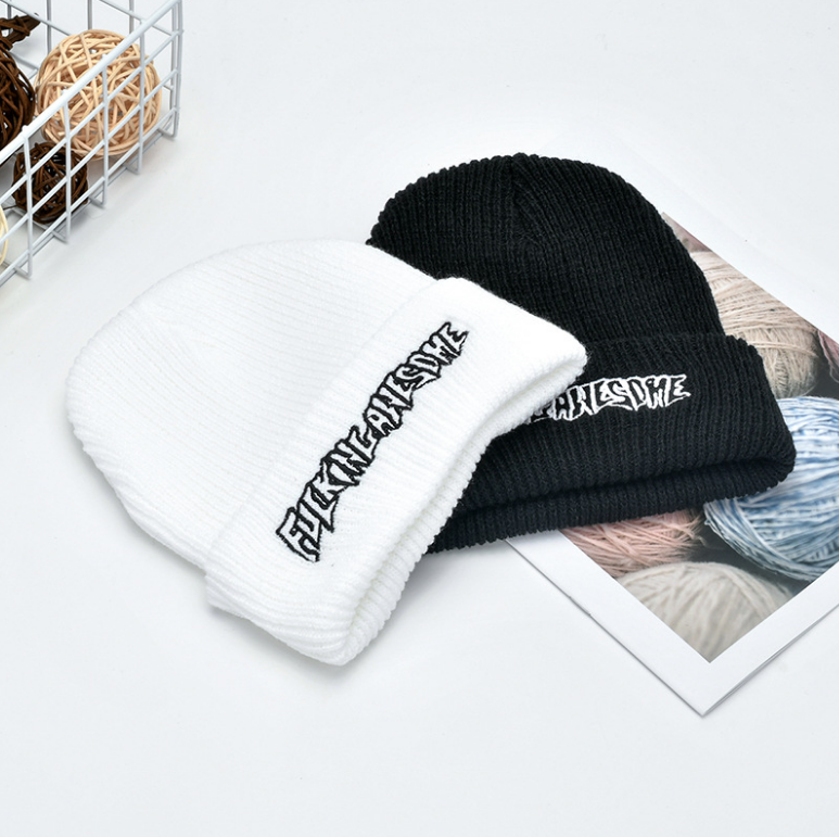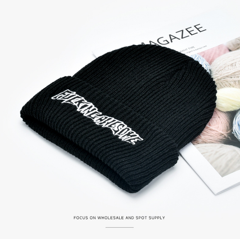 Beanie Hat Ribbed FUCKNG Embroidered Black Knit Ski Cap Warm Solid Men Winter US