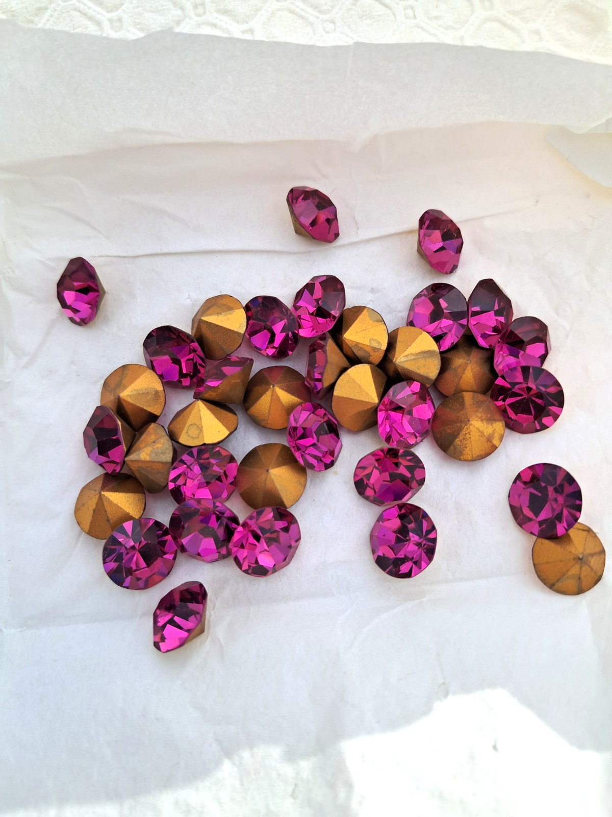 FULL PACK SWAROVSKI RHINESTONES 48 SS GOLD FOILED/FUCHSIA (36 PCS) ART #1100
