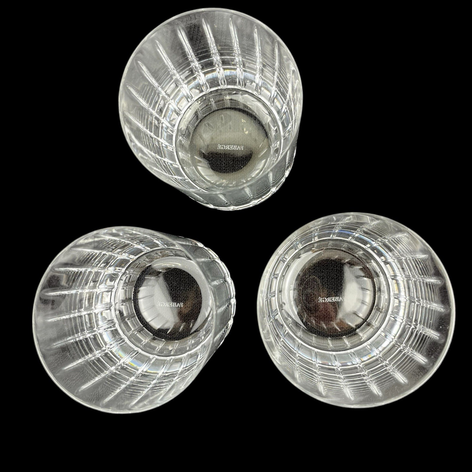 Great, preowned, smoke free home, no callouts, no chips, cracks, or repairs Details Fabergé etched on the bottom of each glass Volume weight: 12.8 ounces /380 ml Color: clear Height: 3.9 inches/ 10 cm