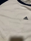 Fairly used Adidas long sleeve jersey in blue and white, men’s size XL. Features a classic sporty design with breathable fabric, perfect for casual wear or layering. This jersey shows signs of wear and has some stains, making it ideal for a thrifted, worn-in look or DIY customization. Great for Adidas collectors, vintage sportswear enthusiasts, or anyone looking for a budget-friendly addition to their wardrobe. Condition: Fairly used with visible stains; please see photos for details. Chest width: 2 ft Shoulder width: 9 in Body Length: 29 in Sleeve Length: 26 in Bottom hem width: 24.5 in Sleeve Opening Width: 4 in