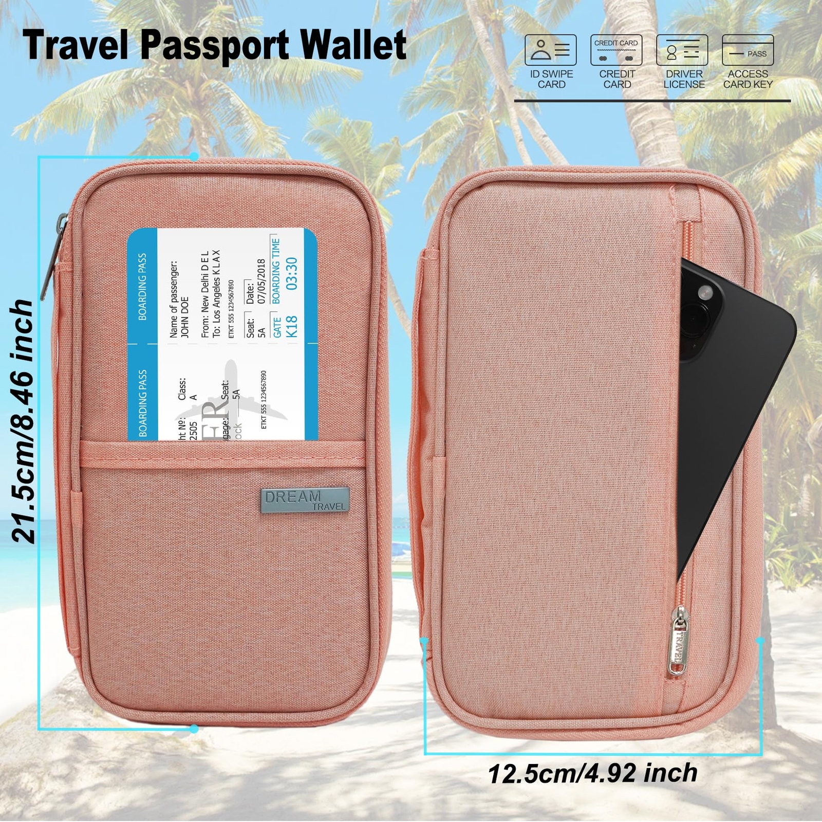 This passport wallet is a lifesaver for family trips! It fits all our travel docs—passports, tickets, cash, even vaccine cards—without feeling bulky. The RFID blocking keeps our info safe, and the waterproof material is a nice touch. The pink color is cute, and the organizer pockets make everything easy to find. Perfect for keeping travel essentials in one place—highly recommend!