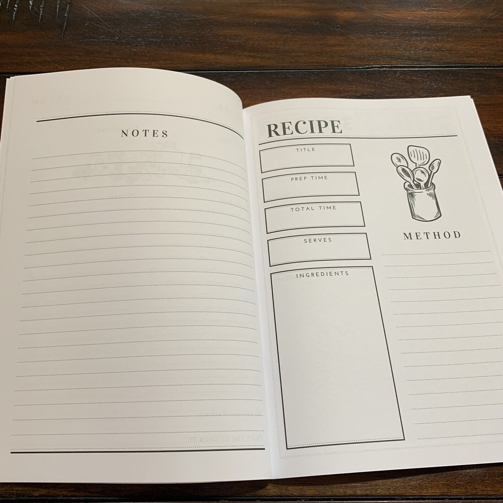 Recipe Book Family Cookbook Notebook 7x10 inches 85 Pages - 40 recipe pages with a matching notes pages for photos or journal entries about the recipe Floral cover