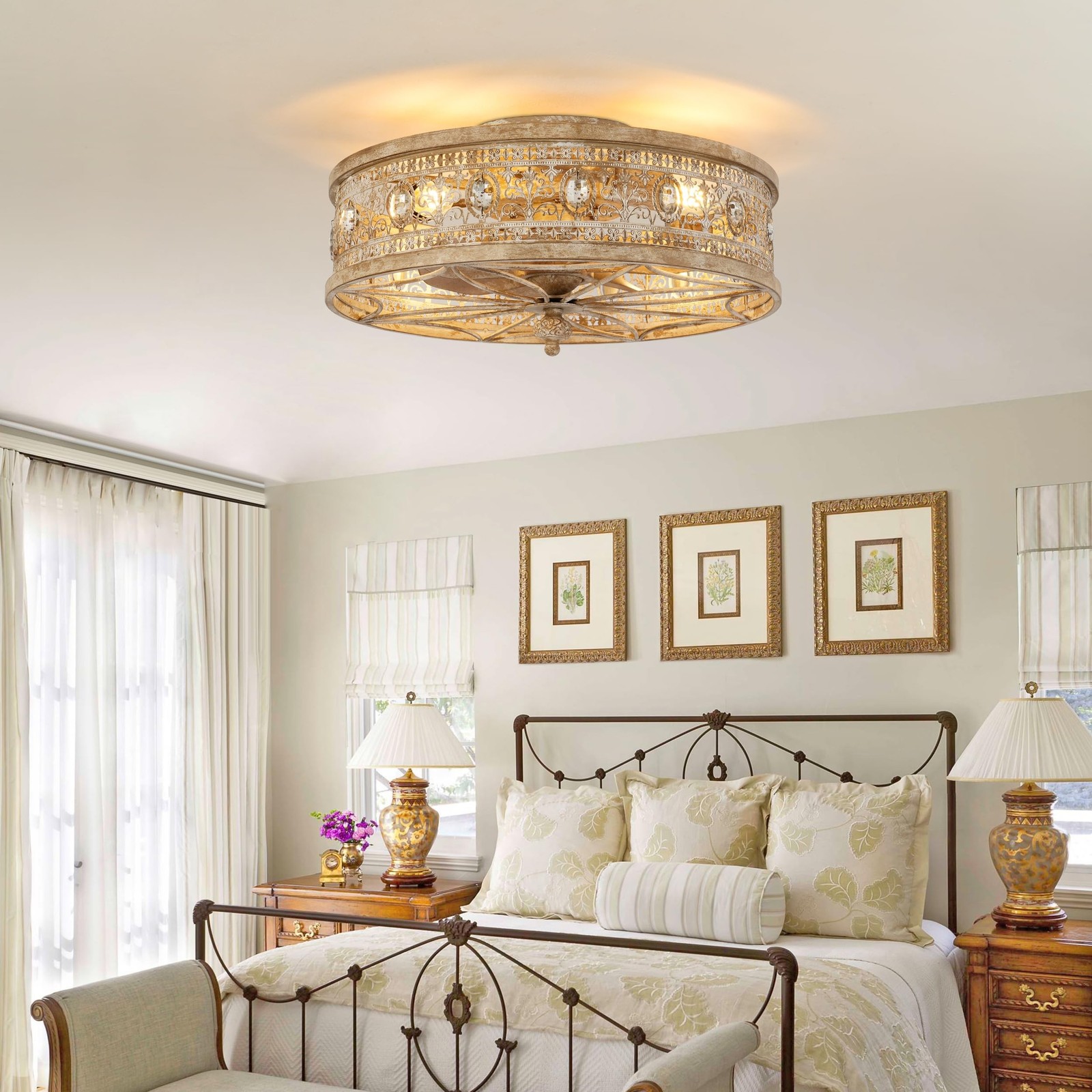 20" Flush Mount Ceiling Fan with Light, Low Profile Bladeless Design, Remote ...