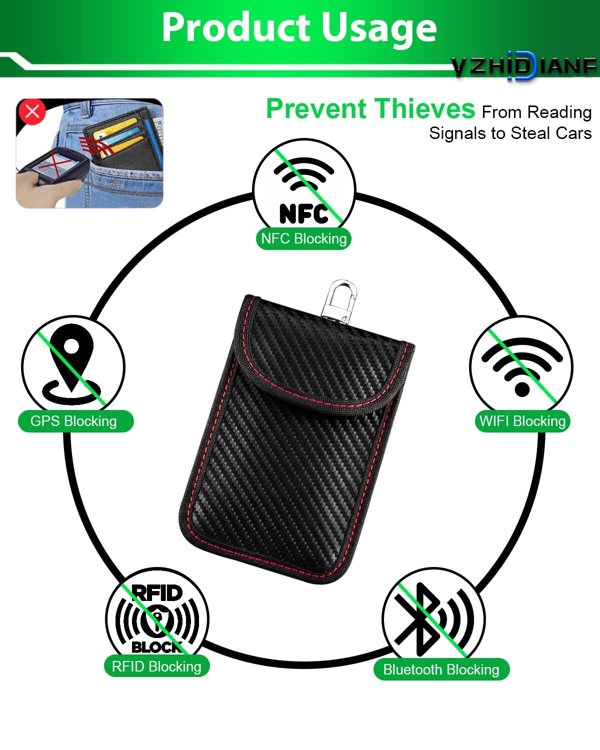 YZHIDIANF Faraday Key Fob Protector (3 Pack), Key Fob Signal Blocker Pouch, Faraday Bags Signal Blocking Security Pouch Anti-Theft Anti-Hacking Car Keys Fob Case Prevent Keyless Car Theft Immediately Stop Keyless Car Theft: Different from the common double-layer Faraday bag in the market, YZHIDIANF Faraday bag has triple protection: a layer of premium carbon fiber, a layer of nickel and copper Blocking, and a layer of premium nylon lining, which can shield the signal 100%, so that the thief cannot get your fob key signal on the computer to prevent break-in cars and trunks and keyless ignition theft Double Layer: There is one more layer than the common Key Fob Frequency Protector in the market. You can store the car key and credit card separately. Note: The inner layer of the key pouch shields the signal 100%, and the outer layer cannot be shielded. When you need to shield, please put the car key in the inner layer and close the button firmly Easy to Carry: YZHIDIANF large and exquisite Faraday key fob blocker pouch can be loaded with 2-3 car keys, put it in your pocket and take it anywhere, very convenient Classic Design: Dimensions: 5.5" x 3.5". Secure closable flap with elastic accommodates multiple sizes of keychains and small devices. The integrated keychain hole provides more flexibility Quality Commitment: If you are not satisfied with the signal blocking effect of YZHIDIANF key fob protector, please feel free to contact with us. 1 Year refund and lifetime warranty. 100% satisfaction, zero risk shopping SHIPPING - We offer FREE shipping on all orders! - We ship within 3 business days of payment, usually sooner - We only ship to the lower 48 states, no APO/FPO addresses or PO Boxes allowed International buyers – please note: Import duties, taxes, and charges aren't included in the item price or postage cost. These charges are the buyer's responsibility. - Please check with your country's customs office to determine what these additional costs will be prior to bidding or buying. - We have confidence in our products, but if you are not fully satisfied please contact us within 30 days of purchase and you will get full refund. * Order Cancellation Policy ** You can return a product for up to 30 days from the date you purchased it. 1. The seller reserves the right to cancel the special case only due to eBay cancellation fee. 2. The decision of seller is the final. 3. The seller will respond to the cancellation request within 2 business days. Please wait for the result of cancellation. 4. In case the cancellation is not completed by some reasons, the buyer can follow the options below to get the refund. 4.1 The buyer can reject the item when it arrives. 4.2 The buyer can send the item back to the seller within 30 days If the buyer receives item (USA Shipment ONLY). The seller will provide the FREE return label to the buyer when the buyer opens " Return Item" case on eBay by using the reason as "Change my mind" ONLY. 5. When buyer has placed the order. The order will be processed and completed by automatic warehouse system within 5 minutes. In case that buyer sends the cancellation request after 5 minutes of placing the order, the request will be rejected. **Sending direct message to cancel the order is not allowed for every case.* Return Policy For the return case - If buyer would like to return the items for refund or replacement, please CONTACT SELLER to receive the free return label from seller. The refund or replacement will be processed with the tracking number of return label which is provided by seller only. The other ways of return which are not approved by seller will not be processed for the refund or replacement.