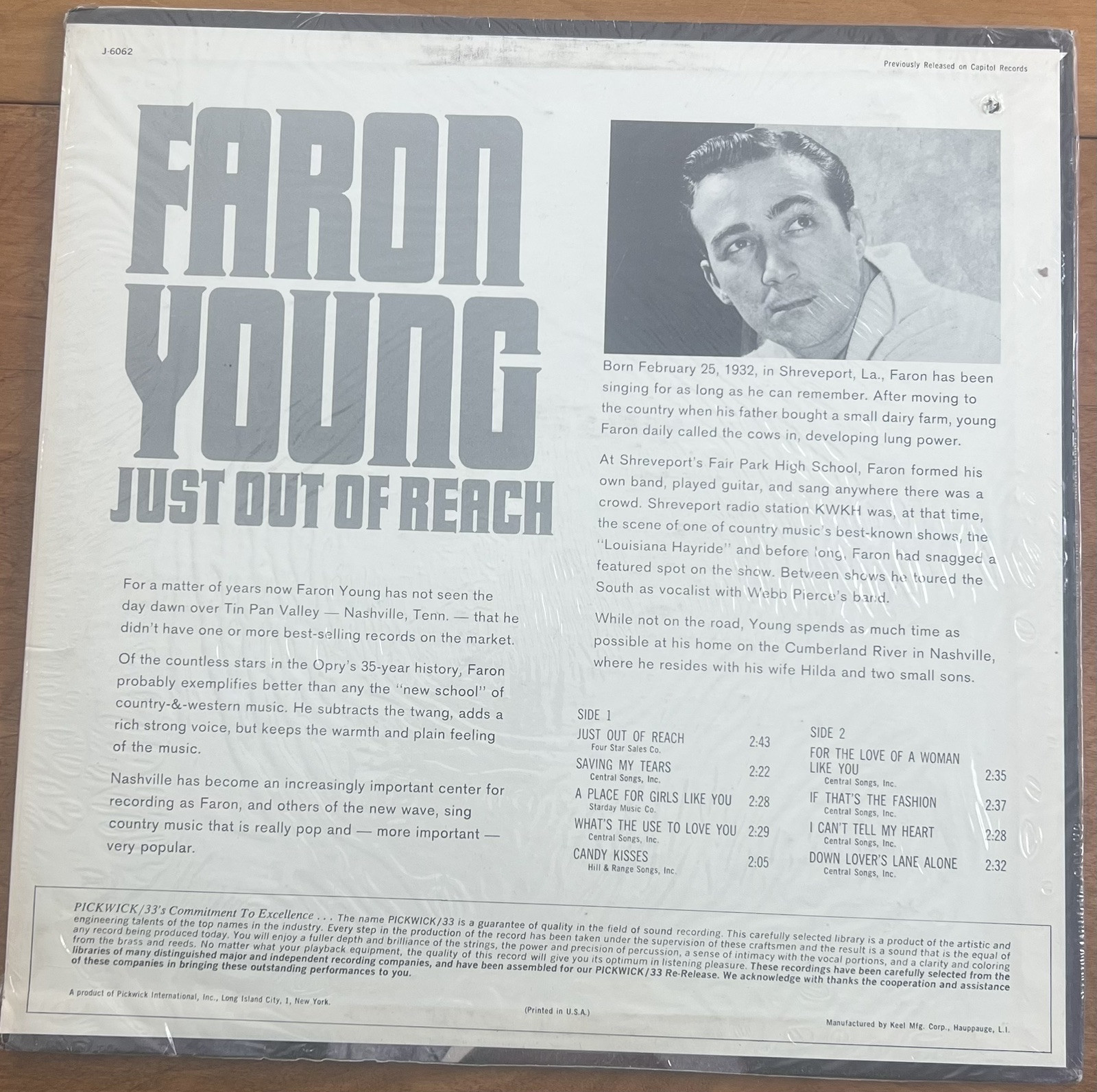 Faron Young Just Out of Reach LP NM Vinyl Country Candy Kisses - original Wrap. Condition is Used. Shipped with USPS Media Mail.