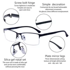 Description Clear lens glasses are one of the newest perfect accessories. offer professional fashion glasses frames with clear lenses. Each pair can allows you to express yourself unique at any time of the day. Necessity of anti-blue glasses:Many of electronics such as TVs,tablets,phones and computers have artificial harmful blue light. If you exposure to artificial light in the evening and long hours of screen time ruins your sleep and causes sore eyes and headaches. Solution:Blue light blocking Lens glasses will super charge your sleep and health by blocking harmful blue light from electronic devices while letting in all other safe light. Material Legs:TR90 Lens:PC(polycarbonate) Lens is PC and Anti-Blue Light,so the Lens will not be easy to break off. PC material has high hardness. But you will also have to take care of it. Anti-Blue Light Lens will reduce eye strain when working on a computer,tablet,phone or television. Excellent for Relieving Visual Discomfort and fatigue associated with using a computer for long periods of time. Legs is made of TR90 that is durable enough for long time using. Frame is super light weight and strong flexibility. And the color of glasses will be not easy fade 1.Fashion Semi Rimless Glasses: Rectangular half-frame design with clear lenses, classic simplicity and stylishness, wearing these clear glasses will surely make you look professional and sophisticated. 2.Lightweight Clear Eyewear: Ultra-lightweight TR90 frames reduce the pressure on your nose and ears, allowing you to enjoy perfect comfort for all-day wear. 3.Blue Light Blocking Lenses: Strength-free HD lenses, blue light glasses can effectively relieve eye fatigue brought about by long hours of computer work. 4.SIZE:Lens Width:56MM(2.01Inches) Temple Length:153MM(6.02Inches) Nose Bridge:13MM(0.51Inches) Lens height:31mm(1.22Inches)Frame Width:128mm(5.04Inches) 5.SERVICE:If you have any issues, please leave us a message first, we will do our best to solve your issues, please give us the opportunity to provide you with better service!
