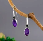 Fashion Purple Zircon Decor Hook Earrings Alloy Silver Plated Jewelry Women Gift