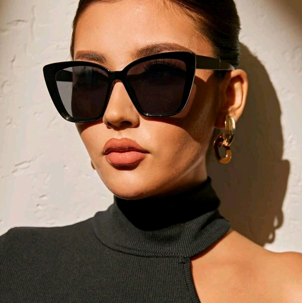 Add a touch of modern style to your beach look with these fashionable cat eye sunglasses. The black plastic frame and tinted lenses make for a classic and timeless pair of sunglasses that will never go out of style. Perfect for women who want to add a touch of glamour to their outfits, these sunglasses are suitable for any occasion. Whether you're lounging by the pool or driving down the highway, these sunglasses will keep you looking and feeling cool and stylish.