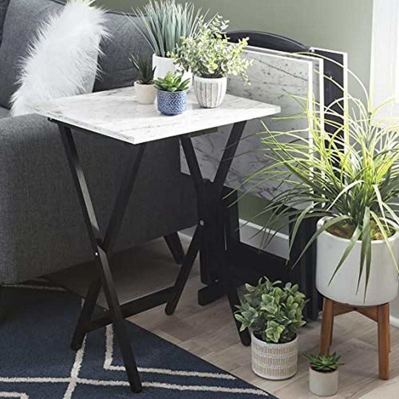 You may also like Wall Mounted Ironing Board Space Saver Foldable Iron Holder Easy Installation US 53.43 USD 56.24 USD Free shipping 5% off Stainless Steel 3-Way Shower Slide Bar Combo 17 Water Flow Patterns Easy Install 41.95 USD 44.16 USD Free shipping 5% off Suction Cup Shower Caddy Corner Organizer Quick Install Multi-Storage Solution 29.05 USD 30.58 USD Free shipping 5% off 2-Tier Stainless Steel Dish Drying Rack Anti-Rust Space Saving Kitchen Organizer 42.74 USD 44.99 USD Free shipping 5% off 40 Pcs White Ceramic Dinnerware Set Dishwasher Microwave Safe Elegant Tableware 158.16 USD 166.48 USD Free shipping 5% off Automobiles Motorcycles Lead Acid Battery Charger High Efficiency 800 MA 4 Step 63.21 USD 66.54 USD Free shipping 5% off Thickened L Shaped Couch Cover Soft Washable Pet Friendly Sofa Protector New 75.99 USD 79.99 USD Free shipping 5% off Baby Cradling Bouncer Musical Vibration Rocker Seat Infant Toddler Chair Swing 123.01 USD 129.48 USD Free shipping 5% off Everyday Square Expanded 40 Pcs Ceramic Dinnerware Set Dishwasher Safe Versatile 158.16 USD 166.48 USD Free shipping 5% off Multifunctional Portable Wardrobe W/ Lockers & Drawers Easy Assembly Storage New 102.12 USD 107.49 USD Free shipping 5% off 360 Rotating Makeup Organizer W/ Drawers Acrylic Cosmetic Storage Case New 53.69 USD 57.98 USD Free shipping 7% off Sturdy Portable Clothes Closet Easy Assembly 3 Rods 6 Shelves Space Saver New 53.79 USD 56.62 USD Free shipping 5% off About this item Easy to move from one room to another with the handle on top. . Black finished base and stand. . Set in stand is 19"W x 13"D x 31"H. Individual tray (open): 19"W x 15. 75"D x 26. 25"H. Weight Cap: 20 lbs. / Each tray. Assembly Required Material : Wood. Product Dimensions:15. 75 x 18. 9 x 26. 38 inches A home furnishing staple Includes four tray tables and one stand White faux marble Top Black finished base and stand. . Set in stand is 19"W x 13"D x 31"H. Individual tray (open): 19"W x 15. 75"D x 26. 25"H. Weight Cap: 20 lbs. / Each tray. Assembly Required Material : Wood. Product Dimensions:15. 75 x 18. 9 x 26. 38 inches › product details Brand:Linon Product Dimensions:15. 75"D x 18. 9"W x 26. 38"H Maximum Weight Recommendation:20 Pounds Color:White Recommended Uses For Product:Residential Use Item Weight:34. 6 Pounds Frame Material:Wood Top Material Type:Faux Marble,Marble Shape:Rectangular You may also like Compact Dish Drying Rack Removable Utensil Holder Space Saving Kitchen Drain New 29.05 USD 30.58 USD Free shipping 5% off 16oz Electric Coffee Grinder 18 Grind Settings Stainless Steel Mess-Free Pouring 62.44 USD 67.43 USD Free shipping 7% off 3 Gallon Wet Dry Shop Vacuum Cleaner Compact Lightweight Portable Home Garage 79.03 USD 83.19 USD Free shipping 5% off Acrylic Bathroom Shelf 2 Pack No Drill Self Adhesive Durable Storage Caddy New 12.9 USD 13.58 USD Free shipping 5% off Bamboo Dish Drying Rack Eco-Friendly Sturdy Kitchen Organizer W/ 4 Slots New 10.73 USD 11.29 USD Free shipping 5% off Expandable Dish Drying Rack Multi-Functional Utensil Holder Compact Design New 46.19 USD 56.69 USD Free shipping 19% off Kitchen Faucet W/ Pull Down Sprayer Brushed Nickel Stainless Steel Single Handle 50.37 USD 53.02 USD Free shipping 5% off 60W Bluetooth Speaker Heavy Bass Double Subwoofer LED Lights Wireless Outdoor US 78.73 USD 85.02 USD Free shipping 7% off Crispy Rice Treats Snacks Individually Wrapped 40 Pack Marshmallow Dessert New 17.06 USD 16.12 USD Free shipping 5% off Wall Mounted Floating Shelf No Drill Adhesive Storage Bathroom Kitchen New 15.32 USD 16.13 USD Free shipping 5% off Adjustable 2 Tier Wall Mount Dish Drying Rack Heavy Duty Kitchen Organizer New 58.74 USD 63.44 USD Free shipping 7% off Hands-Free Kitchen Sink Strainer Food Waste Disposal Removable Storage Organizer 19.36 USD 20.38 USD Free shipping 5% off
