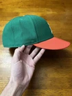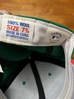 Hat has light wear throughout with some discoloration in sweatband. Has discoloration where sticker was, has also been pre curved with a steamer, see photos.
