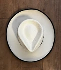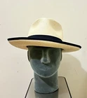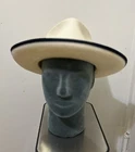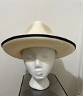 ReThread Clothing Co. Seller of New and Barely worn Designer and Name Brand items originally purchased for use in the Film Industry, now available to youat tremendous savings Add a touch of sophistication to your outfit with this stylish fedora from Sak’s Fifth Avenue. The natural white color of the paper straw material is complemented by a black band and black trim on the brim, giving it a classic and timeless look. Measuring 3.25” in brim measurement and 22” in circumference, this unisex adult hat is perfect for any occasion, whether it be a party, cocktail event, or casual day out. The fitted adjustment type ensures a comfortable and secure fit, while the 4.5" crown height adds a touch of elegance. This fedora is perfect for those who want to add a touch of dandy style to their wardrobe. Made in Italy, this high-quality hat is a must-have for any fashion-forward individual.