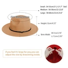 COMFORTABLE & SOFT 65% cotton and 35% polyester make the fedora hat comfortable and soft. ADJUSTABLE & TWO TONE Two different size fit all head circumference,two tone will make you more unique and stylish. SUITABLE OCCASION Great accessory to any outfit,perfect for attending wedding party,birthday party,club,fishing,hiking,etc. GOOD PACKAGE To prevent deform and bent during transportation,our fedora hat is packaged with a hat support. QUALITY ASSURANCE Please don’t hesitate to buy the fedora hat,if you are dissatisfied for our fedora hat,please feel free to contact with us,we offer 100% refund. Specification: Type Name:Fedora Hat Material:65% cotton and 35% polyester Size:hat circumference available in 2 size M:56-58cm/22"-22.8" L:58-60cm/22.8"-23.6" M:brim width:7cm/2.76"L:brim width:7.5cm/2.95" Package Includes: 1 x fedora hat ✔High Quality Material:wide brim fedora hats are made of 65% cotton and 35% polyester,soft and comfortable for all-day wear. ✔Adjustable Size:Hat circumference: M:56-58cm/22"-22.8",L:58-60cm/22.8"-23.6",brim width:M:7cm/2.76",L:7.5cm/2.95".Medium size fits most women or men,large size fits anyone who has a large head circumference or wears thick wig,you can adjust size by string inside. ✔Classic Design:Classic design with belt buckle and two tone make you more unique and charming,these dress hats will be well match with your fashion costumes. ✔Perfect Gifts:The felt fedora hat is great accessory to any outfit,comfortable and stylish,will be a ideal gifts for family or friends. ✔Suitable Occasion:The felt hat is perfect for attending a wedding,birthday party,club or lounging at the beach,you would get many compliments one the two tone fedora.It's also suitable for formal events or daily wear.