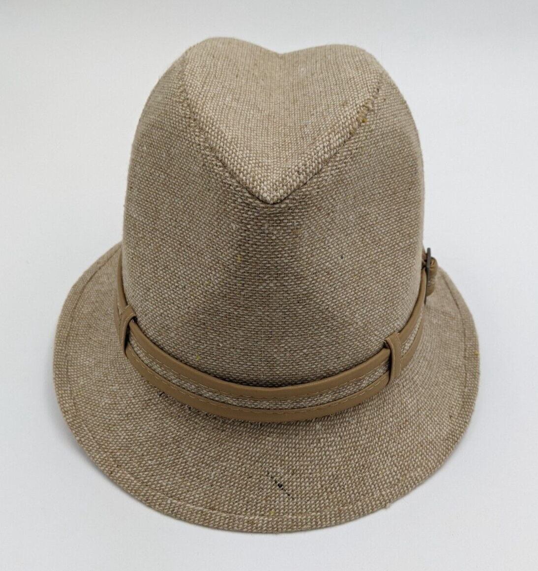 Beige woven wool blend fedora/hat Unbranded 60% wool, 40% polyester One Size Measures approximately 22.25in around the inside of the hat Good used condition with minor wear Please feel free to contact me with any questions! Please read each listing carefully. We will make every attempt possible to resolve the issue if we made a mistake. Payment: Payment is due within 5 days of purchase. Thanks! Best attempts have been made to clean all pre-owned items according to manufacturer's recommendations.