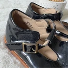These elegant black kids dress shoes are perfect for special occasions. Featuring a Velcro strap, they combine style with comfort. Condition: Excellent pre-owned (no flaws) Comes from a smoke-free and pet-free home. For seller use: 12oz 2284