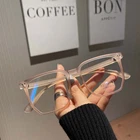 Product information: Product name: Glasses Glasses structure: full frame Lens material: resin Lens function: anti-radiation, anti-blue light Style: personality, unisex style, ins style Frame color: black under the transparent frame, bright black frame, champagne frame, transparent frame, transparent gray frame Lens color: TR90 + anti-blue light lenses Frame width: 14.7cm Nose bridge width: 2cm Lens width: 5.4cm Frame height: 5.3cm Leg length: 14.5cm Packing list: Glasses x1