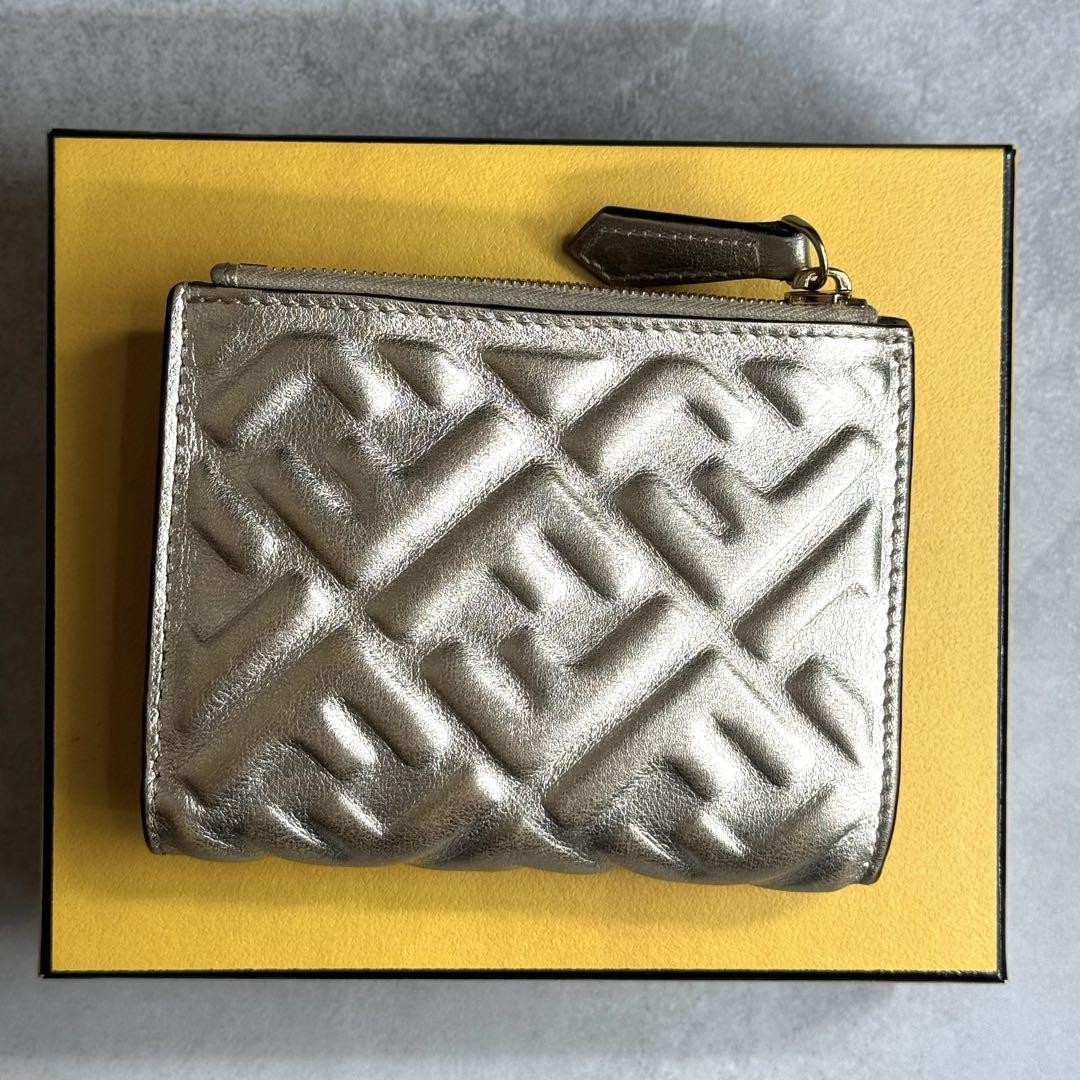 Fendi Tri-Fold Wallet with FF Logo Baguette Embossed Zucca Boxed Design