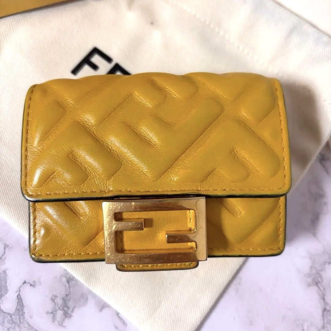 Fendi Tri-Fold Wallet With Box, Ff Logo Baguette Embossed Zucca Key Features ## Product Overview This is a genuine Fendi tri-fold wallet featuring the iconic Zucca (FF Logo Baguette Embossed Zucca) pattern. It comes with its original box, making it an excellent choice for collectors and fashion enthusiasts seeking authentic luxury accessories. ## Key Features and Benefits - Authentic Fendi wallet with premium craftsmanship - Classic tri-fold design for organized storage - Embossed FF logo pattern on durable Zucca canvas - Includes original Fendi box for display or gifting - Compact and functional for everyday use ## Technical Specifications and Details - Brand: Fendi - Model/Style: Tri-Fold Wallet - Material: Canvas with embossed logo pattern - Pattern: FF Logo Baguette Embossed Zucca - Dimensions: Approximately 4.7 inches (width) x 3.5 inches (height) x 0.8 inches (depth) - Condition: Pre-owned, excellent condition with minor signs of use - Features: Multiple card slots, bill compartment, coin pocket ## Product Condition This wallet is pre-owned but has been carefully inspected and maintained. It shows minimal signs of use, with no significant damage or stains, ensuring its quality and authenticity. ## Main Selling Points - Genuine Fendi product with authentic craftsmanship - Stylish and practical tri-fold design - Embossed Zucca pattern for a luxurious look - Comes with original box, perfect for collectors - Compact size suitable for everyday carry ## Additional Information This Fendi wallet is a perfect accessory for those who appreciate high-end fashion and timeless design. Whether for personal use or as a gift, it offers both style and functionality in one luxury package. Specifications Brand Fendi Product Description Item Title Fendi Tri-Fold Wallet With Box, Ff Logo Baguette Embossed Zucca Payment Supports managed payments Please pay within 5 days after auction is finished. About Us We are located in Japan. It's our pleasure to make you happy by proposing our recommend item. If you have any questions or request about items, please feel free to ask us. International Buyers - Please Note: -Import duties, taxes, and charges are not included in the item price or shipping charges. These charges are the buyer's responsibility. -Please check with your country's customs office to determine what these additional costs will be prior to bidding/buying. -These charges are normally collected by the delivering freight (shipping) company or when you pick the item up - do not confuse them for additional shipping charges. -We do not mark merchandise values below value or mark items as - gifts - The US and International government regulations prohibit such behavior. Thank you for your understanding.