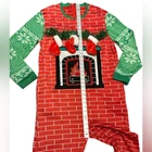 This is a super fun pair of ugly Christmas pajamas by December 25. Adult size medium the body is approximately 36 inches long with a 30 inch inseam. It has lights but I don’t have any batteries to test them.