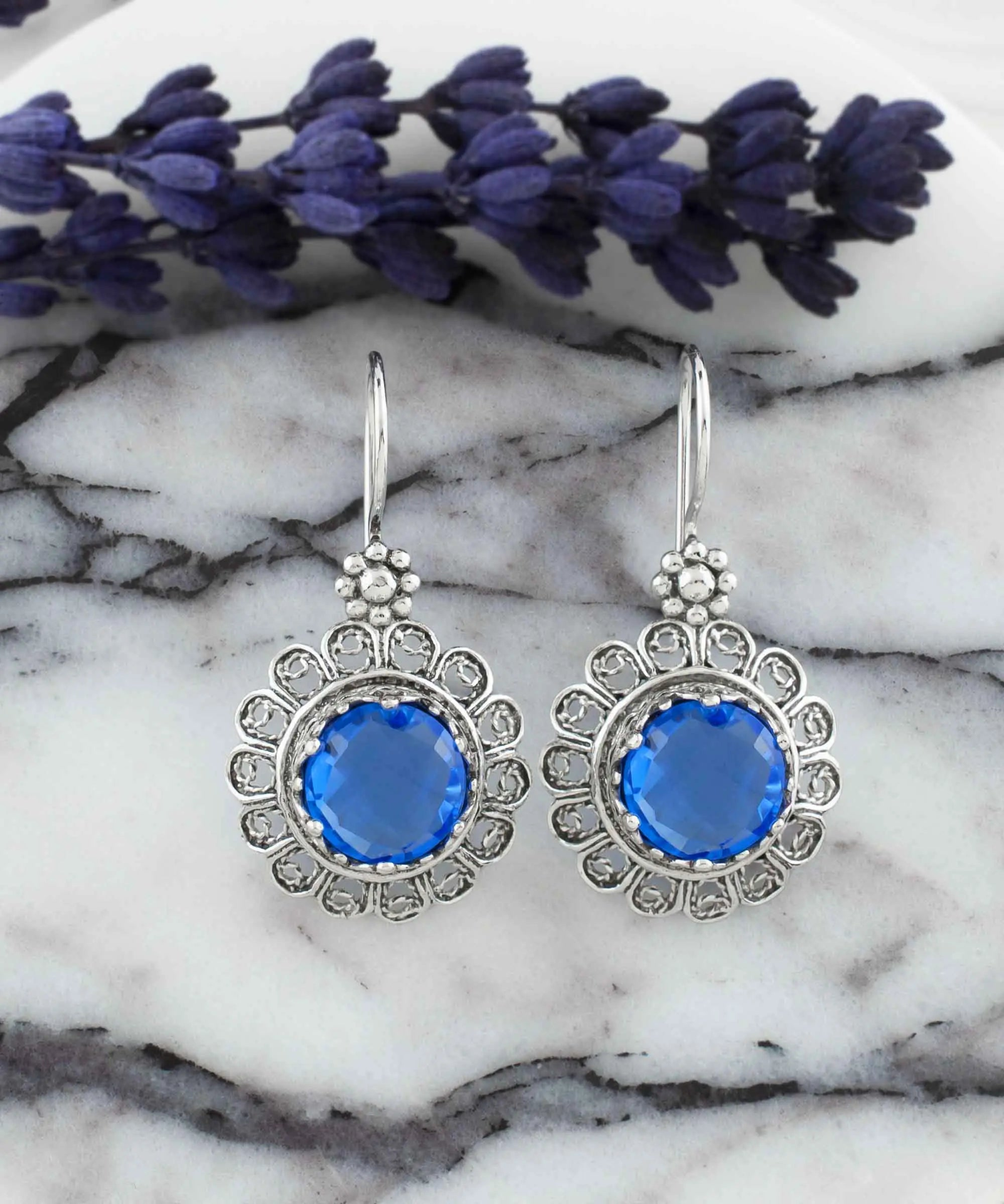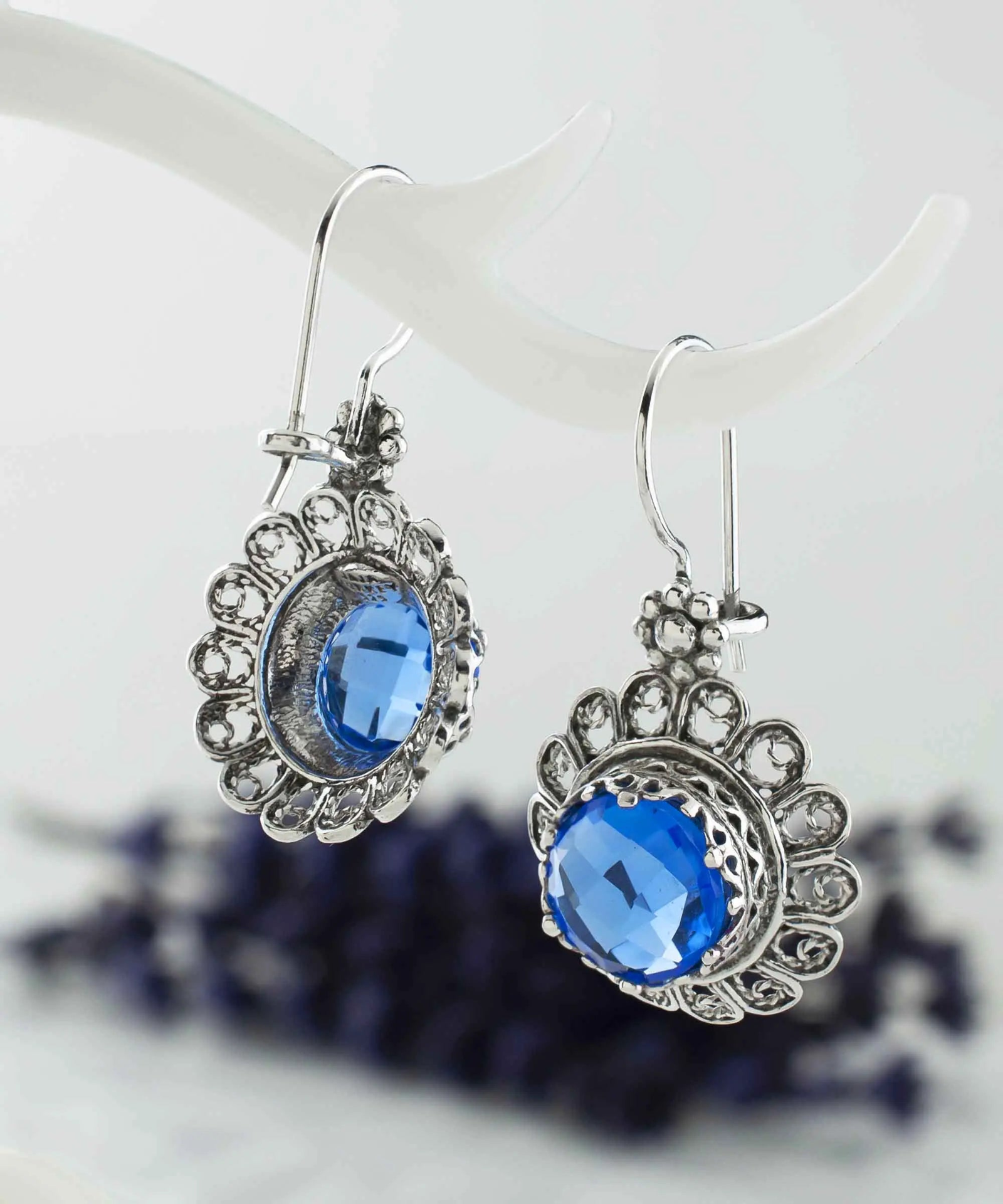 Silver Blue Quartz Flower Woman Drop Earrings Introducing our exquisite silver blue quartz flower woman drop earrings. These earrings showcase a beautiful combination of intricate filigree craftsmanship and stunning blue quartz gemstones, creating a truly unique and elegant accessory for any woman. Crafted from high-quality sterling silver, the filigree design adds a touch of vintage charm, while the sparkling blue quartz stones bring a contemporary twist. These drop earrings are perfect for both casual and formal occasions, making them a versatile addition to any jewelry collection. The beauty of these silver blue quartz flower woman drop earrings lies in their detailed design. Each earring features a delicate filigree flower, meticulously crafted to highlight the natural beauty of the blue quartz gemstone. The silver setting enhances the stone’s deep blue hue, creating a striking contrast that catches the eye. These earrings are lightweight and comfortable to wear, making them ideal for all-day wear. Whether you’re dressing up for a special event or adding a touch of elegance to your everyday look, these earrings are the perfect choice. Our silver blue quartz flower woman drop earrings also make an excellent gift for any special woman in your life. The timeless design and superior craftsmanship ensure that they’ll be cherished for years to come. Whether it’s for a birthday, anniversary, or just because, these earrings are a thoughtful and beautiful gift that she’s sure to love. Each pair comes beautifully packaged, ready to delight the recipient. Don’t miss out on the chance to own or gift these stunning earrings. Order yours today and experience the perfect blend of traditional craftsmanship and modern style.