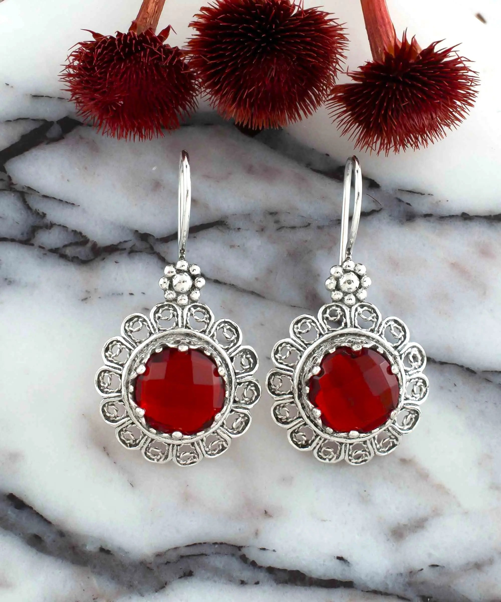 If you're looking for a unique and elegant gift option, our Handmade Filigree Art Flower Design Ruby Quartz Gemstone Women's Sterling Silver Dangle Drop Earrings are the perfect choice. These earrings are handcrafted by skilled artisans and feature an intricate flower design that is sure to catch the eye. The earrings are made of premium quality sterling silver and feature a 10 mm double-side faceted round-cut Ruby quartz gemstone, which is a July birthstone. This gemstone is known for its vibrant red color and is believed to bring luck, love, and positive energy. The gemstone is securely set in the sterling silver, adding an extra layer of durability to the design. These dangle drop earrings are hypoallergenic and gentle on sensitive skin, making them a comfortable and stylish accessory for any occasion. The earrings come with a silver polish cloth to help maintain their natural shine, and a luxurious gift box, making them the perfect gift option for Mother's Day, Valentine's Day, birthdays, anniversaries, or any other special occasion. With their unique flower design and stunning Ruby quartz gemstone, these earrings are sure to make a lasting impression. The high-quality craftsmanship and attention to detail make them a truly special gift option. Order yours today and give your loved one a gift that will be treasured for a lifetime.