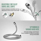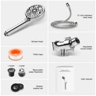 Nine-function chrome-plated handheld Built-in shower filter: Contains 9 kinds of filter balls such as KDF-55, Maifanshi Balls, Calcium Sulfite, and so on. Remove residual chlorine, calcium, magnesium and other heavy metals, minerals, rust, sand and other sediments from the water step by step through the filtration media, infuse vitamin C as well as other beneficial trace elements, soften the water, revitalize the water, reduce dry and itchy skin, no hair loss, no dryness Spray Settings:Our high pressure handheld filter showerhead has 9 switchable settings (gun water, pellet water, shower water, water saver, flare water, spray water, flare water + water saver, shower water + water saver, pause water). Simply press the button on the back of the handheld to enter the high-pressure power rinse mode for quick rinsing of large areas. It is the best helper for cleaning bathtubs, tiles, toilets and more High Pressure & Water Saving: Filtered shower head is equipped with unique pressurization technology and self-cleaning soft silicone nozzles to prevent dirt buildup. The innovatively designed high-pressure system creates a pressurized effect even at low pressures and comes with specialized water-saving nozzles that can be used independently or in conjunction with other modes, providing you with the ultimate showering experience What You Get: Detachable shower head with filter,59 inches 304 stainless steel shower hose,360°angle-adjustable shower holder,reflon tape,removable water restrictor,rubber washer set,user manual Easy Installation: Simple to operate no plumber required, lightweight and easy to install can be quickly installed on any standard shower arm in minutes. If you have any questions about our products, you can contact us through Amazon, we will provide you with the best customer service within 24 hours