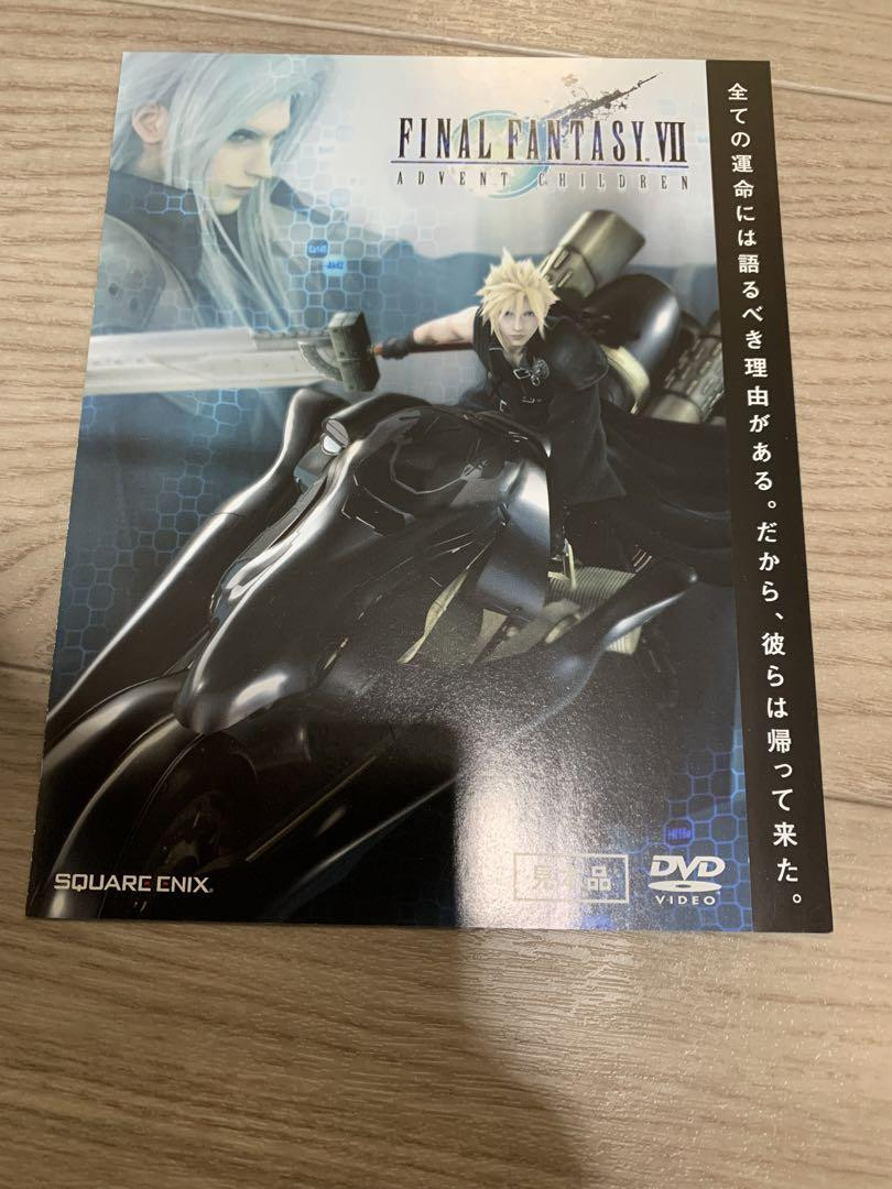 Absolutely love this Final Fantasy 7 Advent Children flyer cutout! The artwork is stunning, and it’s a perfect addition to my collection. Despite being pre-owned, it's in great condition, and the seller was super responsive and helpful. Highly recommend for any FF7 fan looking for a unique piece of memorabilia!