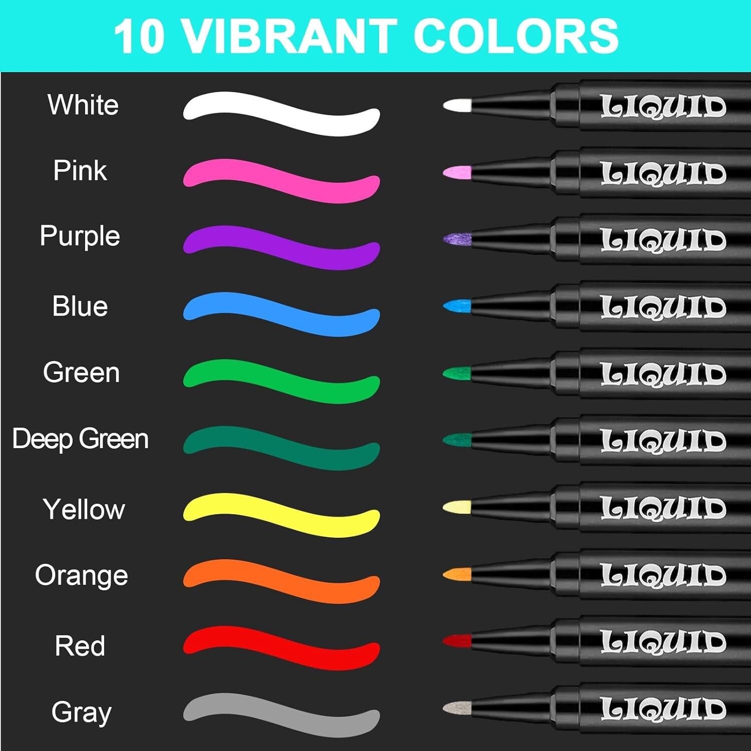 Size: 1 Count (Pack of 10) Brand ALEMHOP Writing Instrument Form Chalk Color Multicolor Ink Color Multicolor Age Range (Description) Kid, 8 - 10 Years About this item Mess-Free and Dust-Free - Say goodbye to dust from traditional chalk! Our chalk markers are designed to provide a clean and smooth writing experience without the mess. These art supplies are best for girls 8-10. Easy to Use - Time to replace the old chalk pens. Our chalkboard markers write directly and effortlessly without tedious shake and press. It can be simply wipe off with a damp cloth after a short time writing on non-porous surfaces. NOTE: Writing for over one week maybe difficult to erase. Available for Everyone - Crafted from non-toxic and odorless materials, our liquid chalk markers erasable are safe for all ages to use. These markers are favorite for kids, girls, artists, teachers, students, business owners, and DIY enthusiasts. Precise Fine Tip - The chalk markers for blackboard feature fine points that deliver impeccable precision and control. Create intricate details and sharp lines with ease, making these markers ideal for crafting, lettering, and intricate art projects. Versatile and Vibrant - Work well with acrylic calander board, glass, metal, ceramics, these window markers for glass are perfect for creating first day of school sign, writing messages, labeling jars and containers, or adding decorative touches to your home.