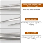 【Reliable Quality】Tweezer tongs for cooking are made of high quality food grade stainless steel, heavy duty, strong and durable, will not harm our body, easier to operate than kitchen utensils such as shovels 【Perfect Decoration Set】Cooking tweezer set includes tweezer tongs of different sizes and angles, 12" and 6.3" in length, long handle keeps you away from hot or oil, providing more safety for a happy cooking experience 【Essential Kitchen Tool Set】Food tweezers tongs are great for plating or handling delicate food or other items. You can use them from picking dill and fennel to food. Having a professional set of food tweezers in your kitchen is essential 【Precision Serrated Tips】Chopstick tongs with serrated tips for precise grip without slipping, allowing you to grip even the most delicate, intricate and slippery items to make your work better 【Multi-Purpose】Chef tweezers set are suitable for cooking, baking, grabbing small objects, medical, beauty, seafood, electronic products, handicrafts and laboratory work etc. Can also be used for feeding small animals and plant maintenance Features: 1.Package includes 6pcs cooking tweezer, the size is 12" and 6.3" 2.The tweezers with curved tip is slender and easy to hold and extend into a narrow space 3.Made of high quality food safe stainless steel, strong and durable, will not harm our body, easier to operate 4.Tweezers tips with serrated tips for precise grip without slipping 5.Long handle keeps you away from hot or oil, providing more safety for a happy cooking experience, perfect for grilling and flipping food in BBQ 6.Offset tweezer tongs are suitable for plating small and delicate foods like caviar, kernels of corn, pine nuts and cranberries 7.Suitable for cooking, baking, grabbing small objects, medical, beauty, seafood, electronic products, handicrafts and laboratory work etc. can also be used for feeding small animals and plant maintenance Specifications: Item name: Fine Tweezer Tongs Set Material: Premium stainless steel Length:12in/6.3in Package size: 12.5 x1.7 x 1.3 inches Package weight: 0.6lb Package list: 1 x 12" Straight Tweezers Tongs with Round Tip 1 x 12" Curved Tweezers Tongs 2 x 6.3" Straight Tweezers Tongs 2 x 6.3" Kitchen Culinary Offset Tweezer Tongs Our products have been well tested, you can rest assured that your purchase is guaranteed. Any problems please feel free to contact us first.