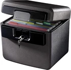 Safe box with fireproof and waterproof protection keeps documents, DVDs and USBs safe from fire and flood Holds up to 40 letter-size hanging files and folders; includes flat key that prevents lid from opening due to fire Cross cut shredder destroys up to 8 sheets at a time including staples and small paper clips Shredder meets P-3 security standards and has auto shut off feature after 3 minutes of runtime On Oct 8, 2024 at 05:13:29 PDT, seller added the following information: