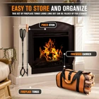 Store New Arrivals Add to Favorite View Feedback Contact Firewood Carrier + Fire Poker + Fireplace Tongs - Fire Pit Tools for Indoor and Outdoor Use, Log Carrier for Firewood, 32 Inch Fire Poker, 26 Inch Fire Tongs, Fireplace Tools Description Item model number Firepit tongs-32 Product Dimensions 17 x 5 x 1 inches Material Stainless Steel Country of Origin China Is Dishwasher Safe Yes Item Weight 1.43 Pounds 【Complete Fireside Toolkit】Our Fireside Trio is a comprehensive toolkit that covers all your fireplace needs. The Firewood Carrier allows easy transport of logs, while the Fireplace Tongs and Fire Poker ensure you have full control over the fire. Together, the fireplace tools create a seamless and enjoyable fireside experience, making it a perfect gift for both seasoned fireplace enthusiasts and newcomers alike. 【Enhanced Safety Features】 With a thoughtfully designed 32-inch length, this fire poker strikes the perfect balance between accessibility and safety. Its versatile design allows you to tend to your fire from a comfortable distance, minimizing the risk of burns while ensuring optimal control. Whether you're arranging logs, adjusting embers, or adding fuel, the 32" Fire Poker and 26" Firewood Tongs make the process effortless and safe. 【Long-lasting Performance】Crafted with precision and durability in mind, each component of the Fire pit tools is made from high-quality materials. The log carrier for firewood is sturdy and spacious,can effortlessly handle up to 30kg of firewood; the Fire Tongs feature a secure grip, and the Fireplace poker is designed for easy manipulation of logs. The entire set exudes quality, promising long-lasting performance and reliability. 【Easy Storage and Maintenance】Convenience extends beyond the fireside experience.The Firewood Carrier featuring a collapsible design for compact storage when not in use.The detachable design of fire pit poker and the retractable design of fire pit tongs save space and are easy to carry outdoors. Additionally, each component is easy to clean and maintain, ensuring that your fire tools remains in top-notch condition for years to come. 【Versatile Application in Various Settings】These fireplace tongs and fire poker,log bag for firewood are not just limited to indoor fireplaces; they excelent in various settings. Whether you're arranging logs in an outdoor fire pit, tending to a bonfire, or managing a wood-burning stove, the Firewood Carrier + Fire Poker + Fireplace Tongs combination of fire pit tools will greatly enhance your fireplace experience1 Year Warranty. Product Description Firewood Carrier + Fire Poker + Fireplace Tongs - Fire Pit Tools for Indoor and Outdoor Use Transform your fireplace experience with our exclusive Fireside Trio set, featuring a premium Firewood Carrier, Fireplace Tongs, and Fire Poker. The Firewood Carrier allows easy transport of logs, while the Fireplace Tongs and Fire Poker ensure you have full control over the fire. Together, they create a seamless and enjoyable fireside experience, making it a perfect gift for both seasoned fireplace enthusiasts and newcomers alike. Firewood Carrier, Firewood Tongs and Fire Pit Poker for Indoor/Outdoor Camping The Fireplace Tongs and Fire Poker are designed with extended reach, ensuring your safety while tending to the fire. Maintain a safe distance from the flames while easily rearranging logs or adding fuel. This feature is especially beneficial for families with children or those who prioritize safety in their home environment. This fire poker isn't limited to just tending to the flames. Its multi-purpose design allows for various applications, such as lifting hot grates, rearranging burning logs, or even handling charcoal in outdoor settings. The 32” Fire Poker is a versatile tool that goes beyond the basics, offering users a comprehensive solution for their fire management needs. The 26" Firewood Tongs are designed for convenience, allowing users to effortlessly grasp and maneuver firewood with ease. The elongated length provides a comfortable reach, reducing the need to bend over and ensuring a hassle-free firewood management experience. Say goodbye to awkward handling and welcome the efficiency of these fireplace tongs. Firewood carrier, Log carrier for firewood, Fire wood carrier canvas Heavy-Duty Capacity: Our firewood carrier is engineered for strength, boasting a robust design that can effortlessly handle up to 30kg of firewood, ensuring you can transport substantial loads with ease. Easy to Store and Carry: With a foldable design, our firewood carrier becomes a compact and space-saving solution when not in use. Its lightweight construction and convenient handles make it easy to carry, ensuring you're always ready for hassle-free firewood transport. Fire poker, Fire pit poker, Campfire poker Safety is a top priority, and the 32” Fire Poker is equipped with features that prioritize the well-being of users. The extended length not only provides a safe distance from the flames but also reduces the need to bend over, promoting a more ergonomic and comfortable experience. Additionally, the handle is designed with a heat-resistant grip, offering extra protection during use. Fireplace tongs, Fire tongs, Firewood tongs, Fireplace tongs log grabber Effortless Firewood Handling: The 26" Firewood Tongs are designed for ultimate convenience, allowing users to effortlessly grasp and maneuver firewood with ease. The elongated length provides a comfortable reach, reducing the need to bend over and ensuring a hassle-free firewood management experience. Say goodbye to awkward handling and welcome the efficiency of these tongs. PACKAGE INCLUDE 1 x Fireplace tongs log grabber 1 x Fire poker stick 1 x Firewood carriers with handles In conclusion, the fire pit tools include 26" Firewood Tongs and 32” Fire Poker and log carrier for firewood offer a perfect blend of efficiency, durability, safety, versatility, and style. Upgrade your firewood 