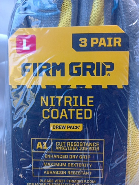3 pair Large Firm grip Nitrile coated Crew pack 100% polyester SHIPPING We Primarily Ship Using Recycled Packaging Materials. Occasionally We May Change the Method of Shipping. If You Need an Item Shipped by a Certain Carrier, Please Let Us Know Before You Place the Order. Batteries are not included. All Measurements are Approximate. RETURNS If the item is not completely satisfactory, we offer a 30-day return guarantee. Just open a return authorization through eBay and return the item. For New items that are Sealed and have been Opened a Partial Refund is Offered. Happy eBaying!