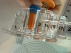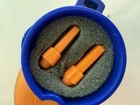 5 of 6 pieces included. Missing Pen Holder. I am unsure if it is used as I bought it from the store this way. I have taped it shut again after taking photos and marking missing item. 3 blades are included for each cutter, they are stored in the cutters themselves. Please see photos. Plastic cutter guides are inside instructions. Cutting mat is behind the instructions.